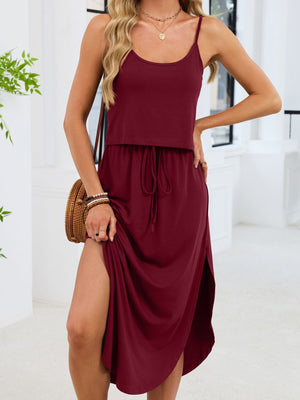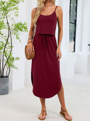 Scoop Neck Drawstring Waist Dress