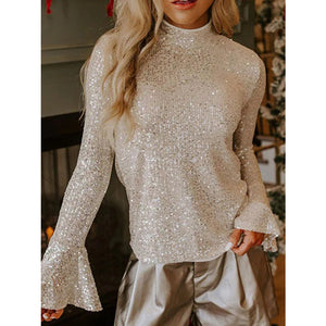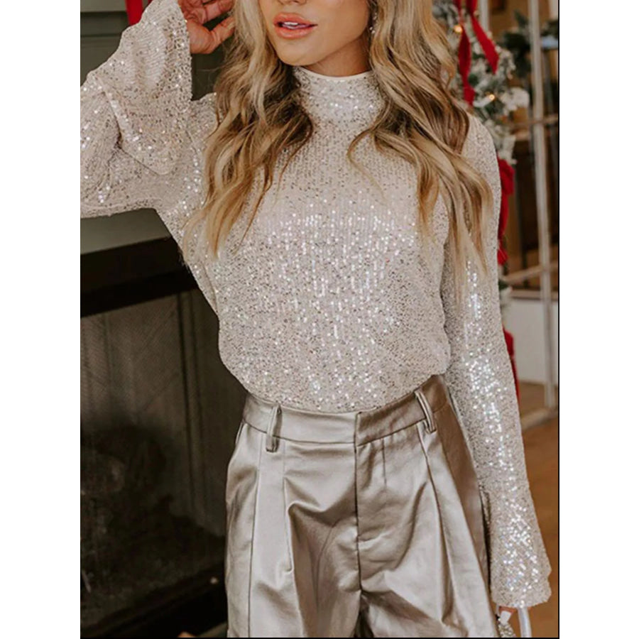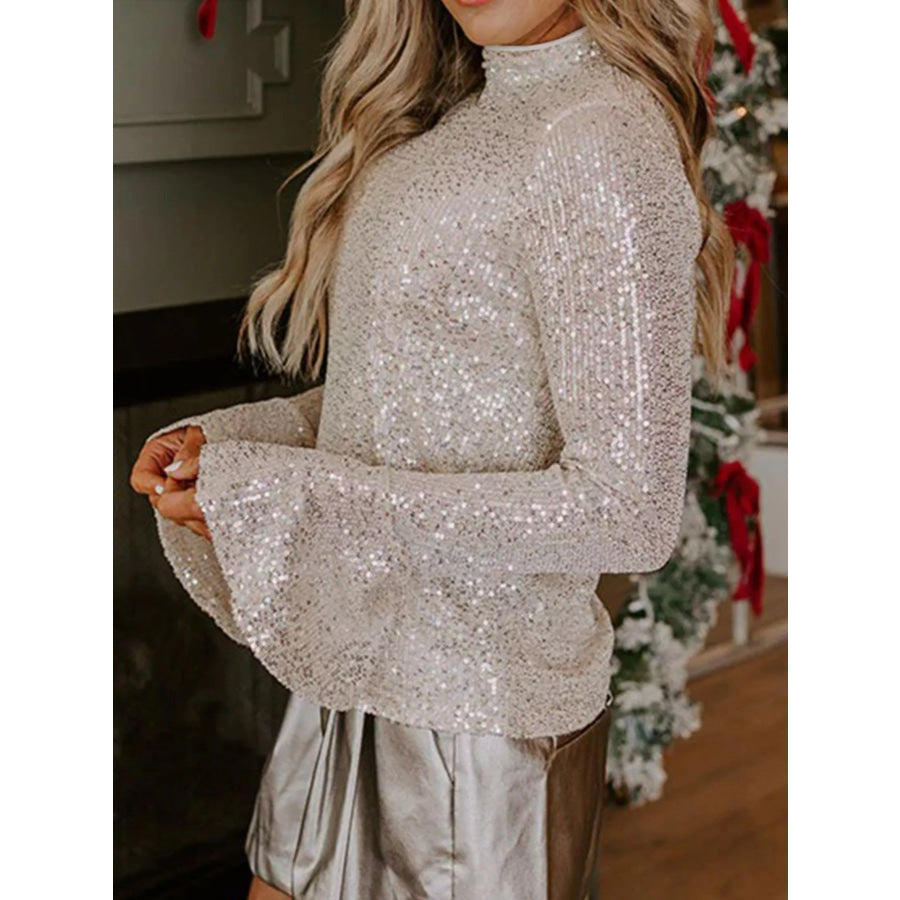 Sequin Mock Neck Bell Sleeve Top