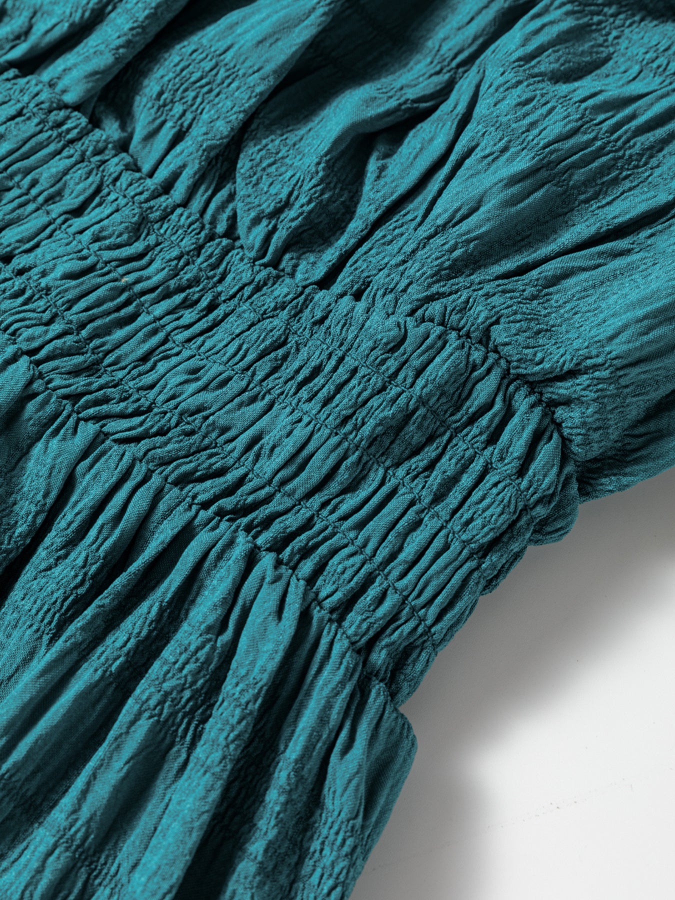 Shirred Pleated Square Neck Sleeveless Midi Dress