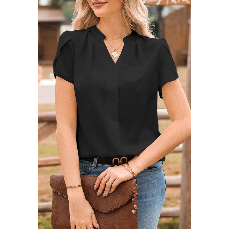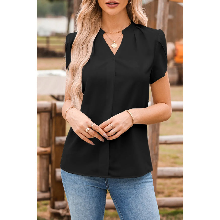 Short Sleeve Notched Blouse