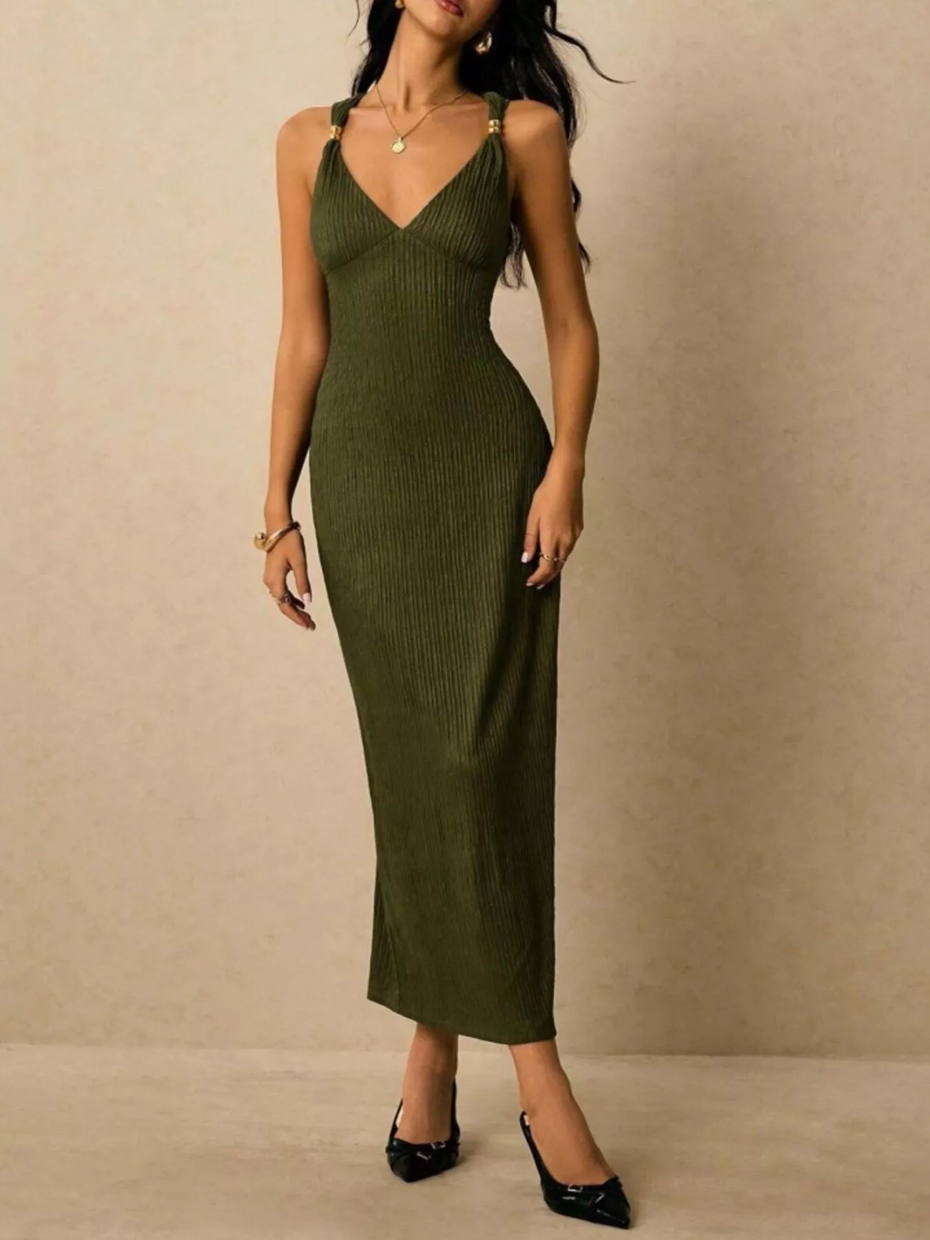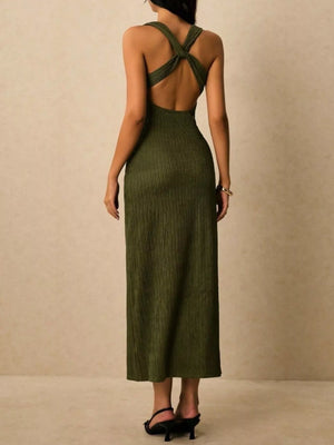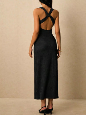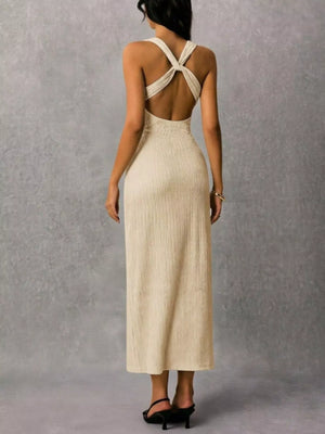 Sleeveless Ribbed Knit Midi Dress
