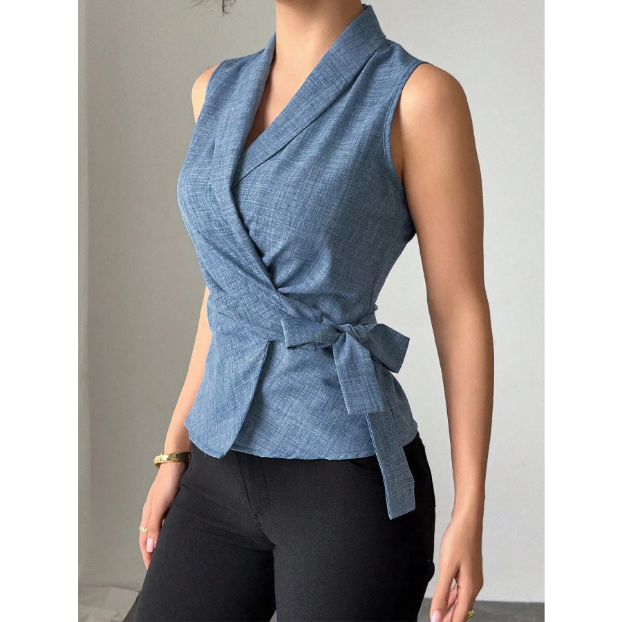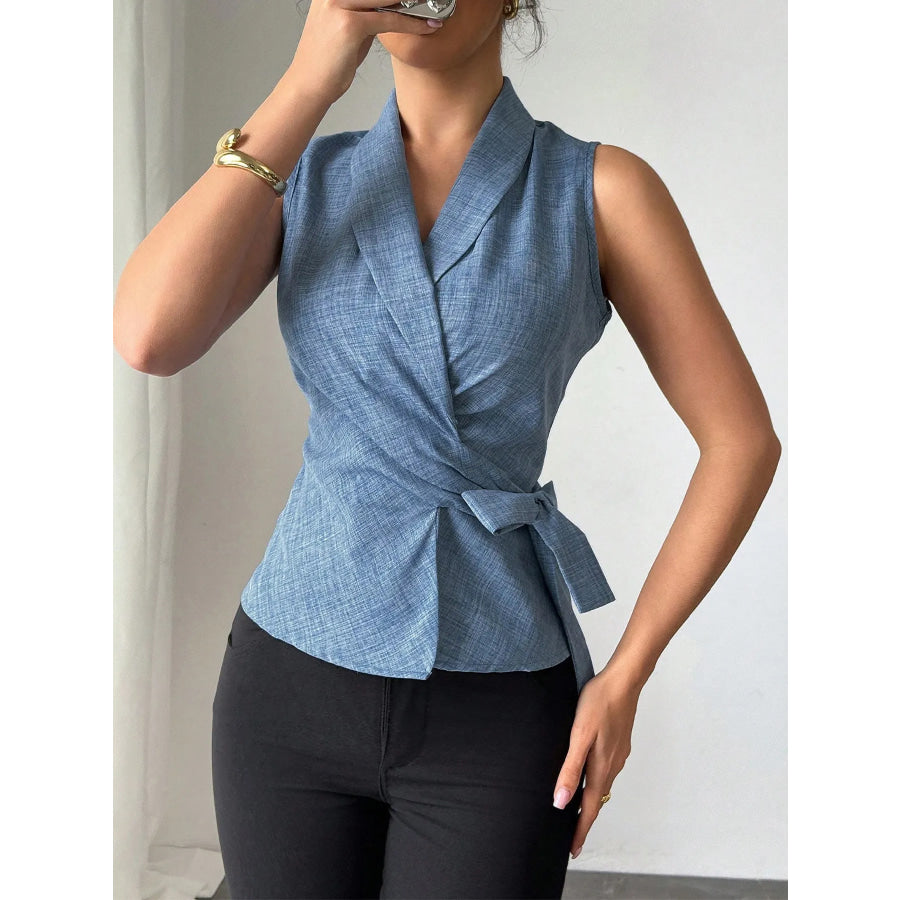 Sleeveless Tied Surplice Top