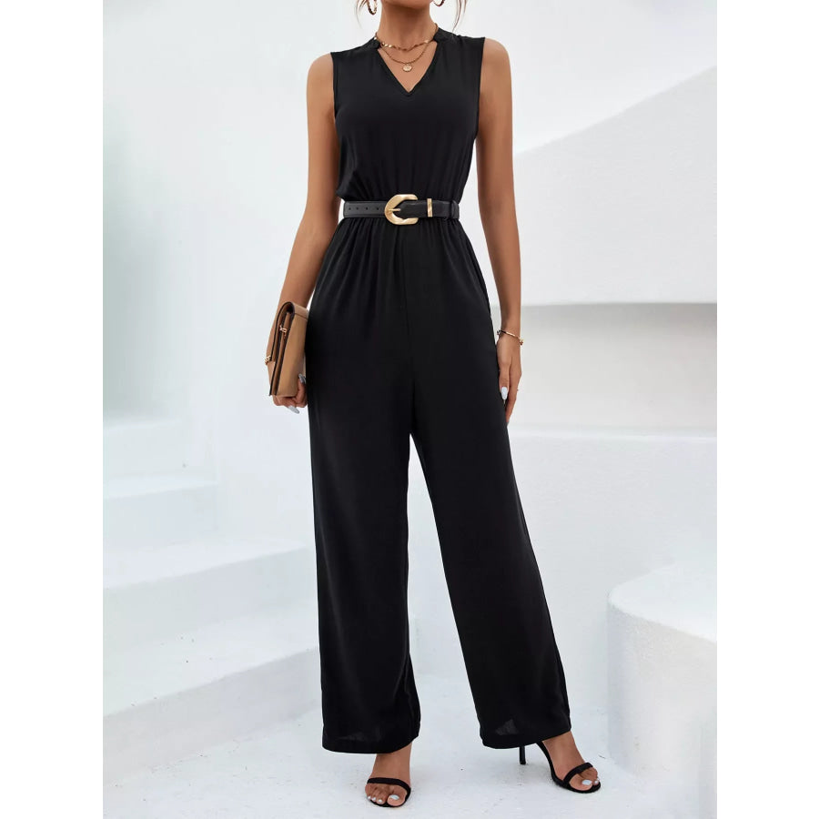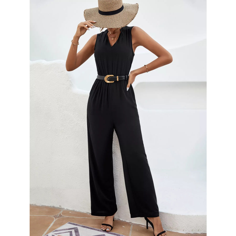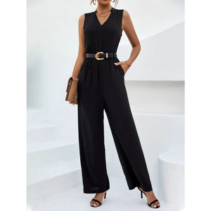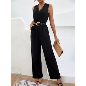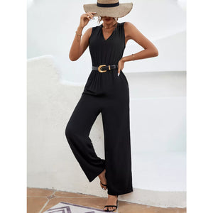 Sleeveless V-Neck Wide Leg Jumpsuit