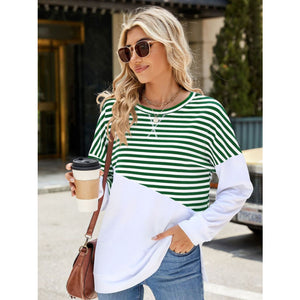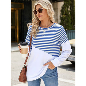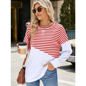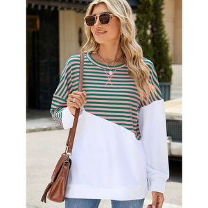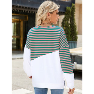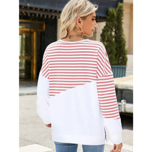 Slit Contrast Striped Long Sleeve Sweatshirt