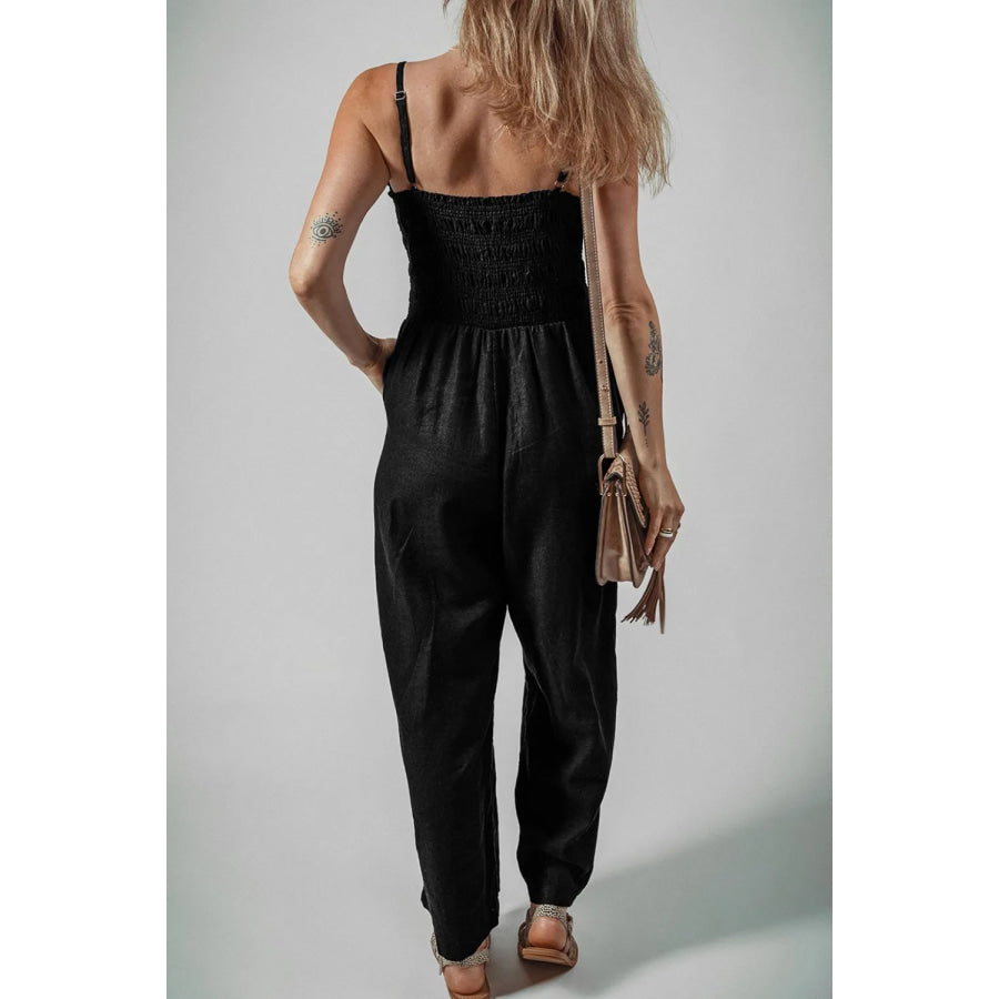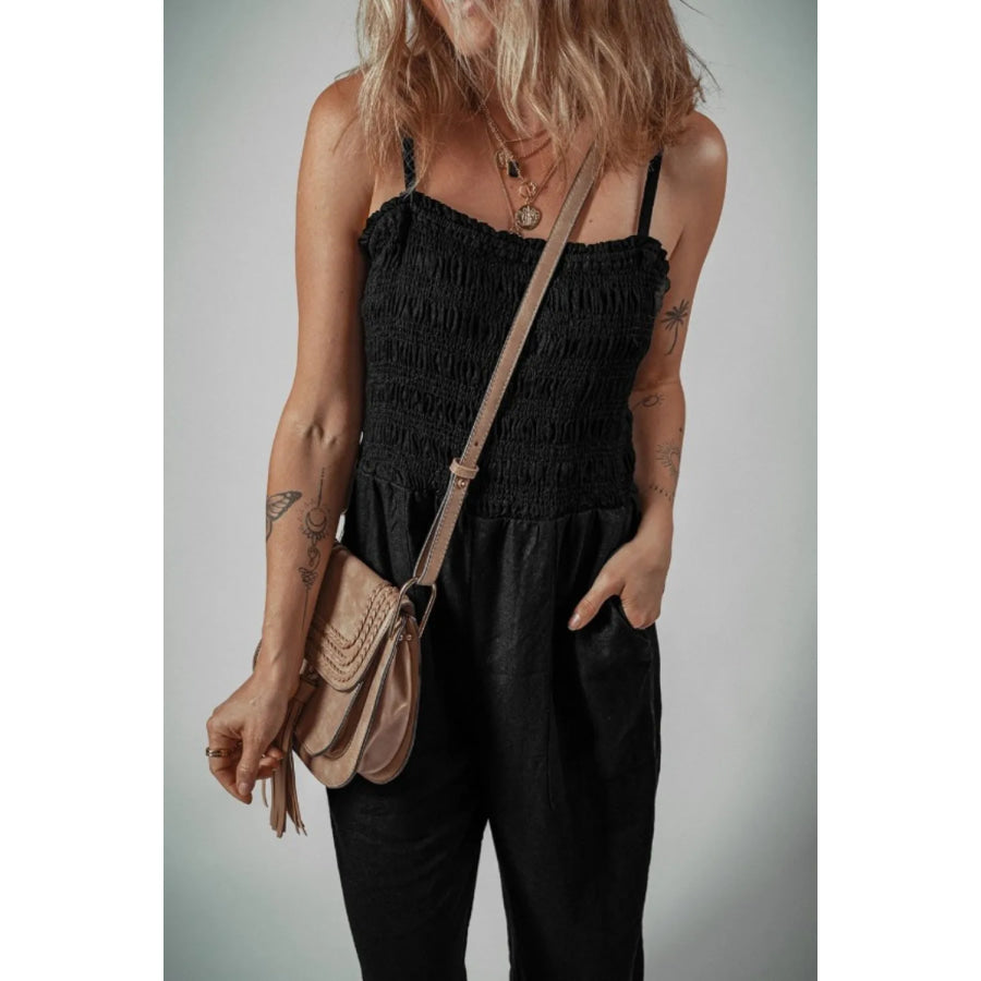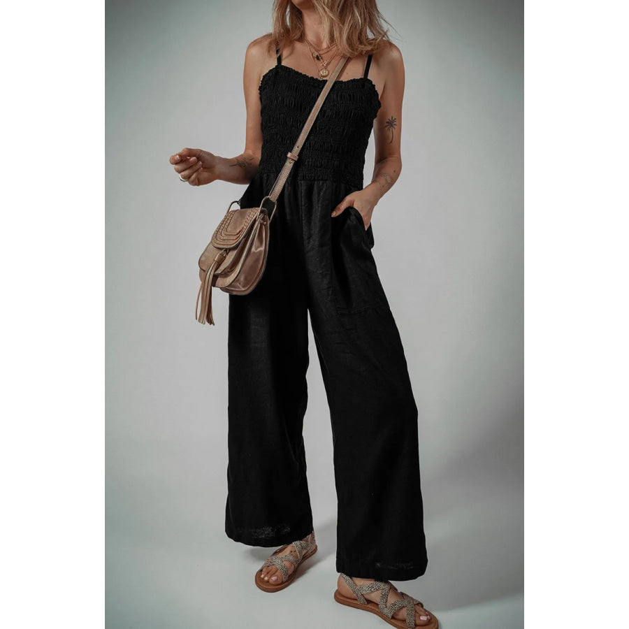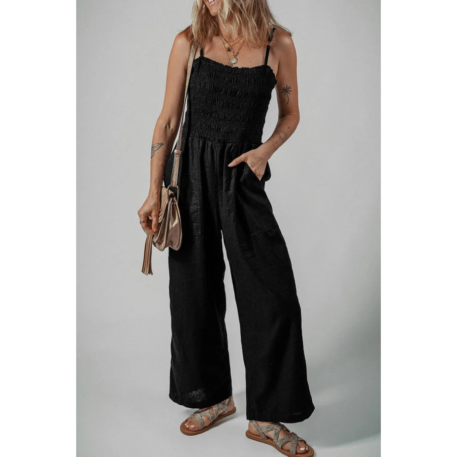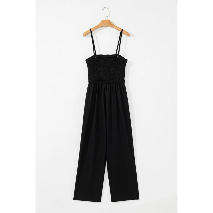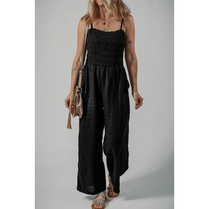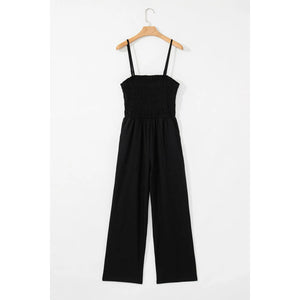 Smocked Spaghetti Straps Wide Leg Jumpsuit