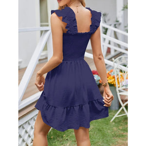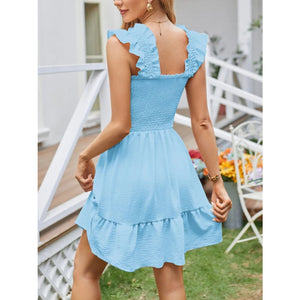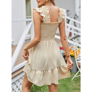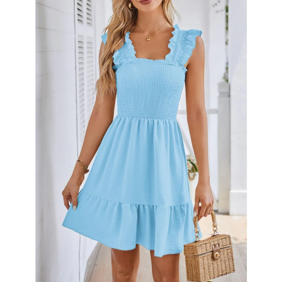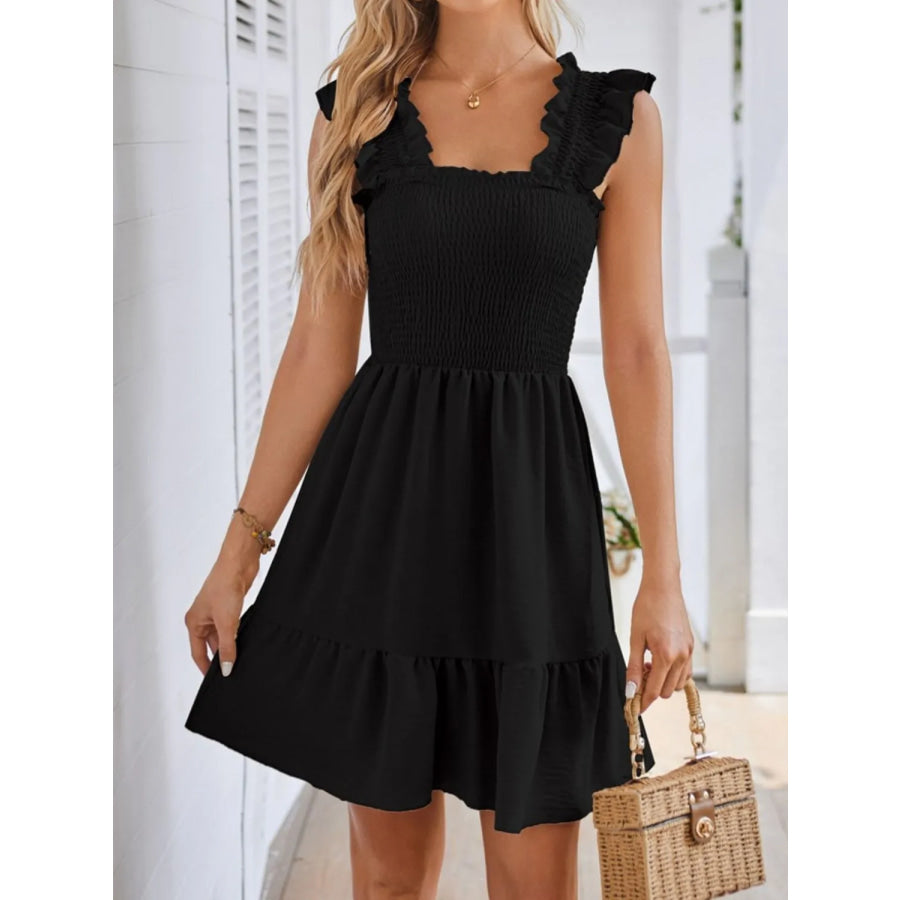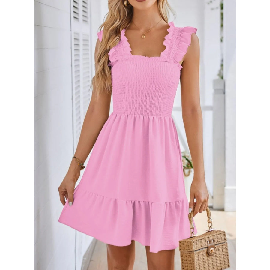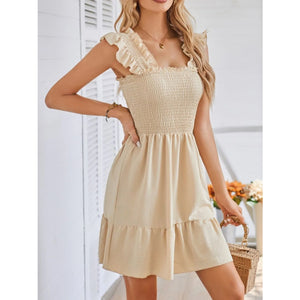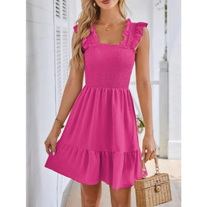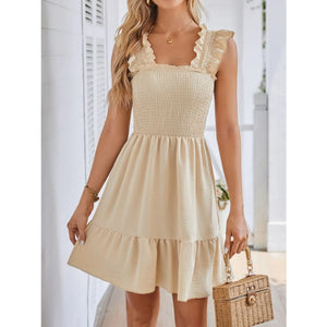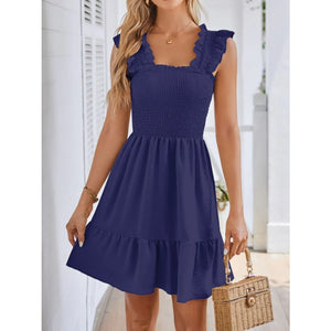 Smocked Square Neck Wide Strap Dress