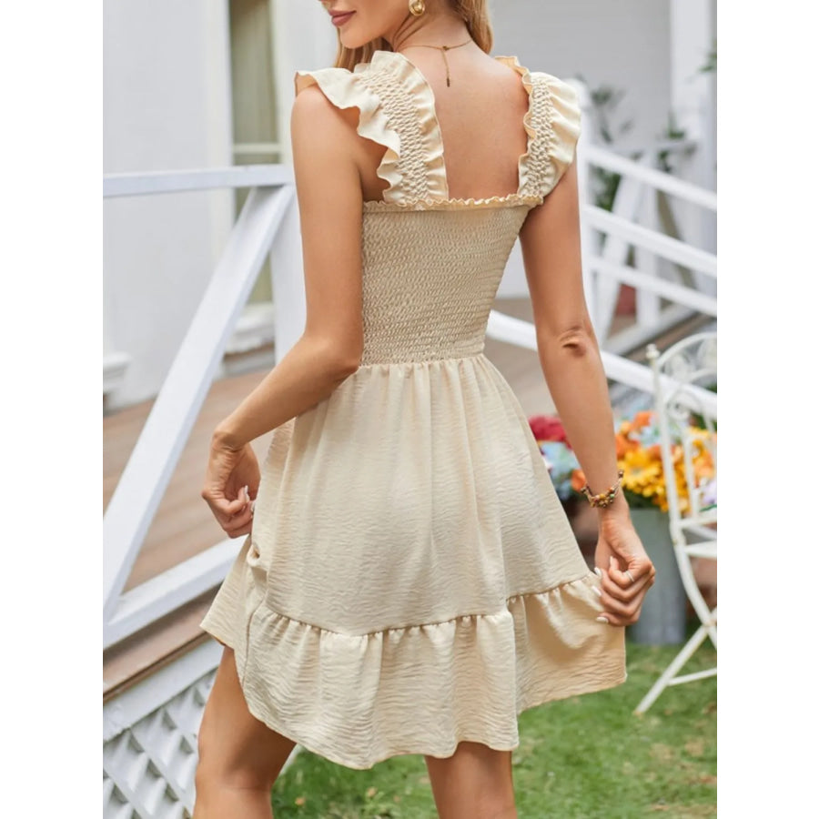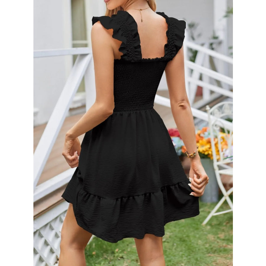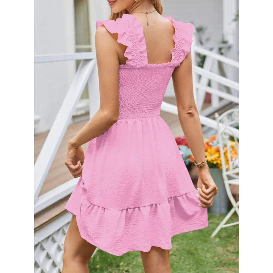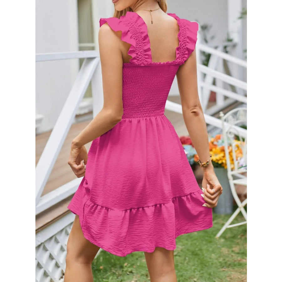 Smocked Square Neck Wide Strap Dress