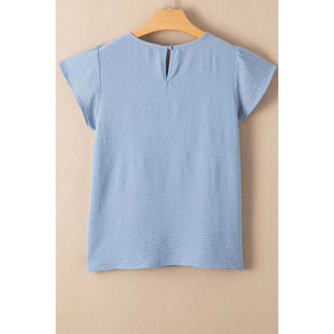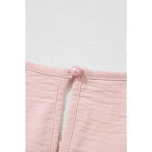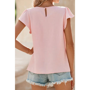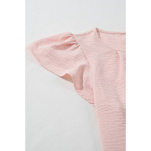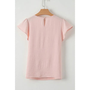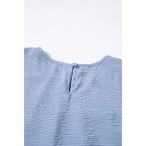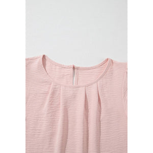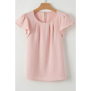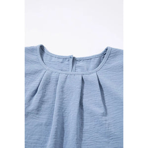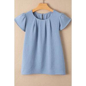 Solid Color Flounce Sleeve Pleated Round Neck Blouse