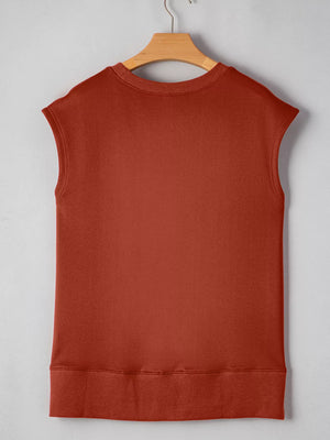 Solid Color Ribbed Trim Round Neck Cap Sleeve Casual Sweatshirt