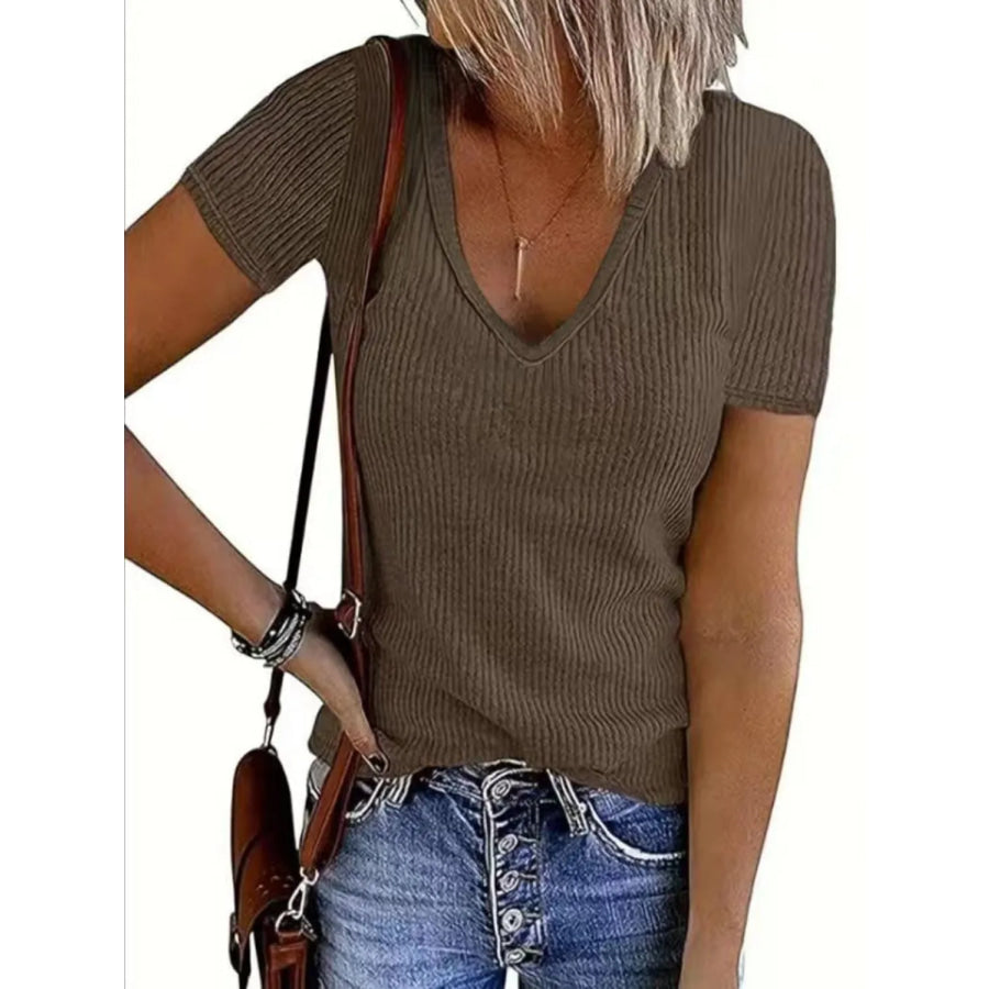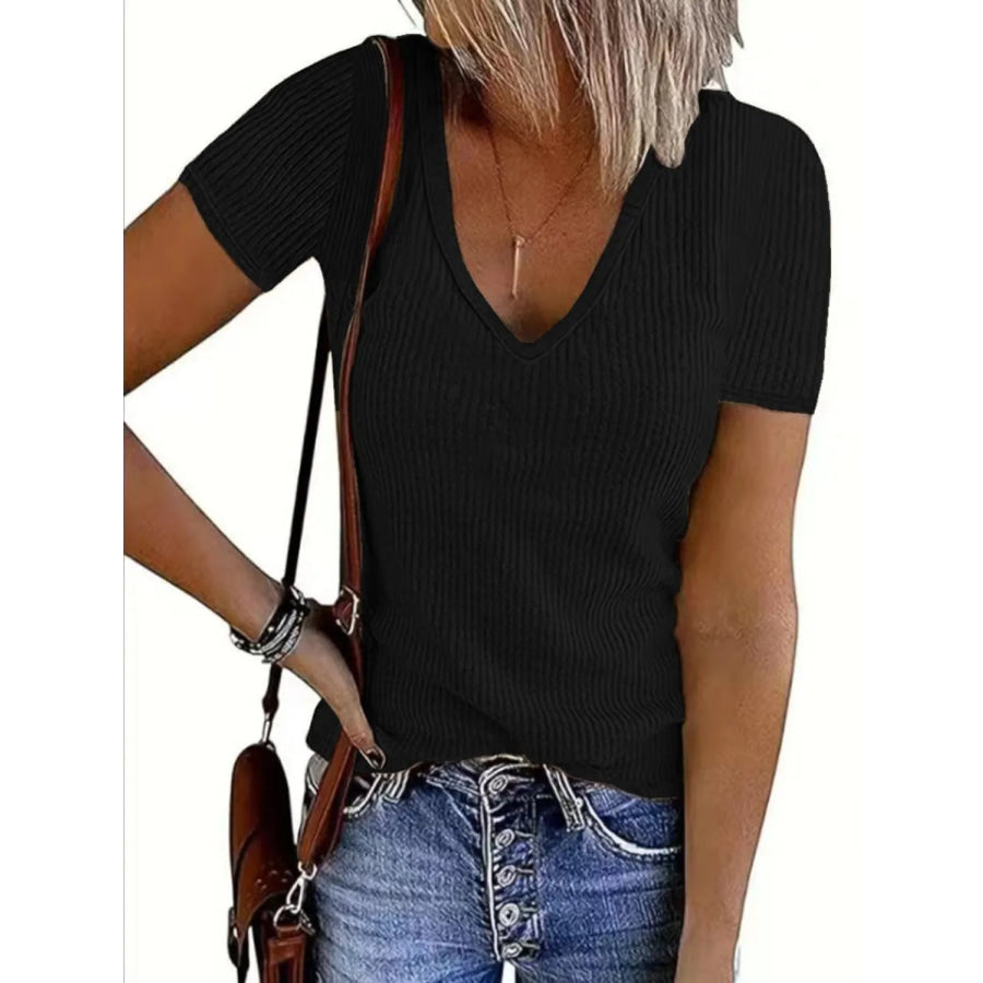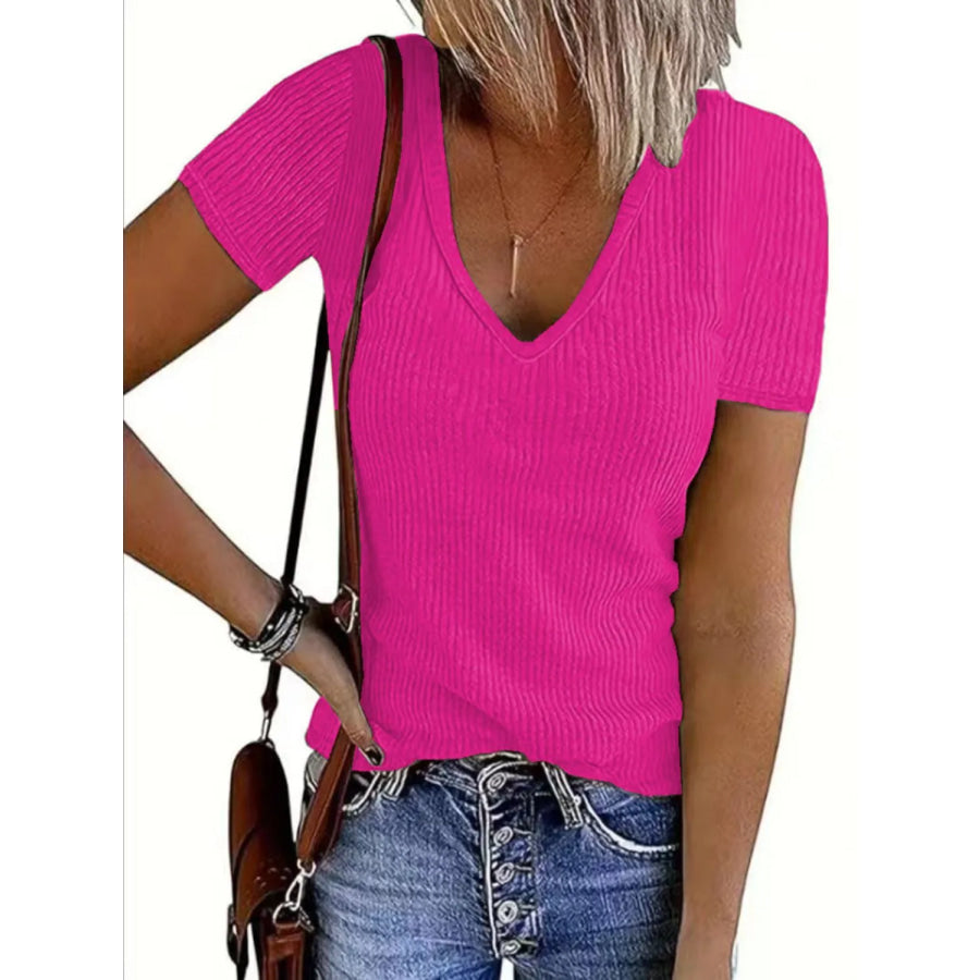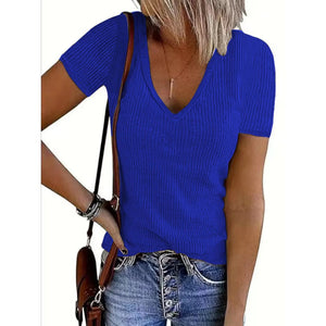 Solid V-Neck Short Sleeve T-Shirt