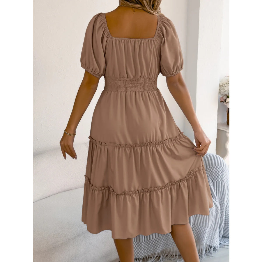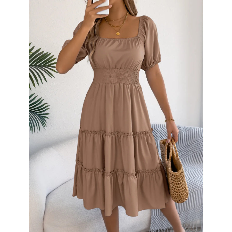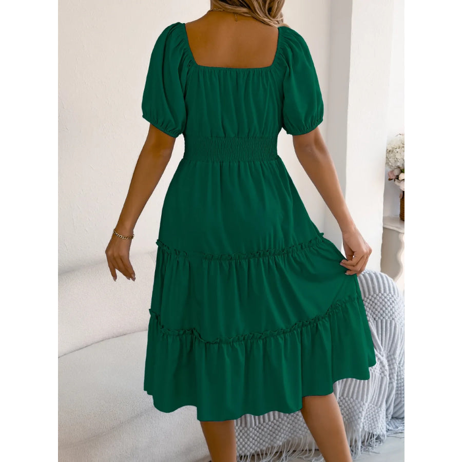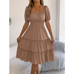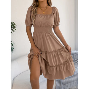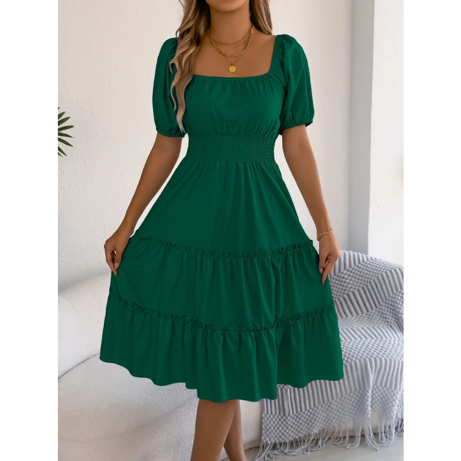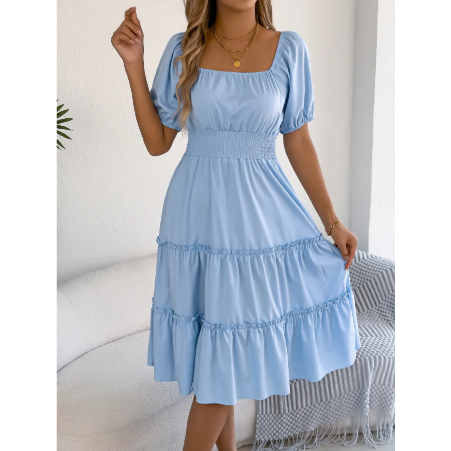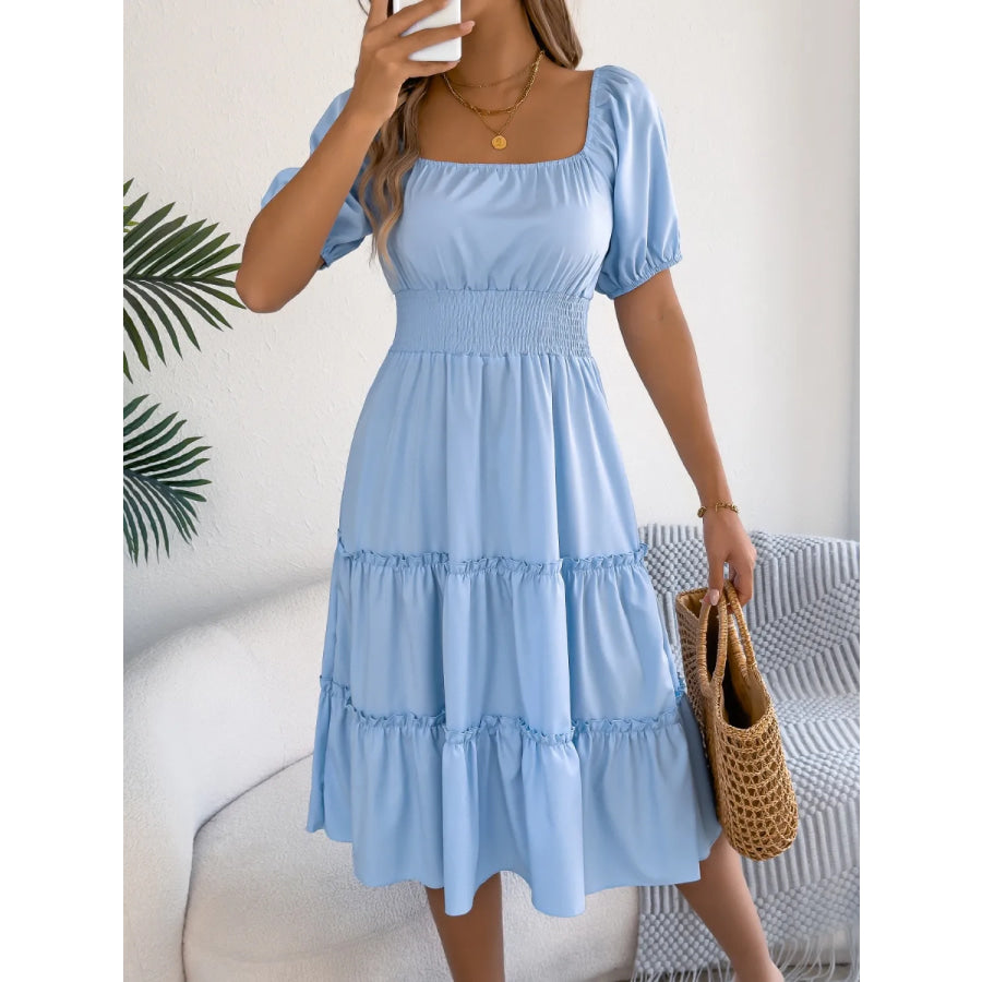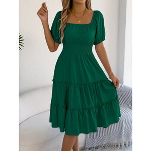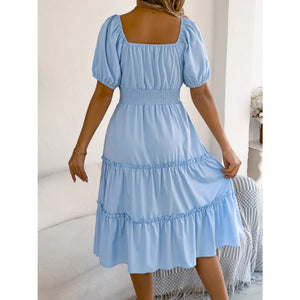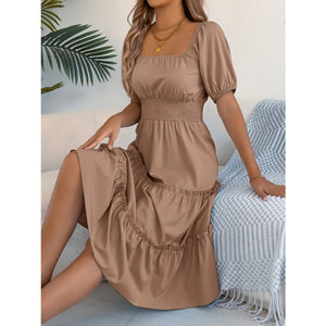 Square Neck Short Puff Sleeve Dress