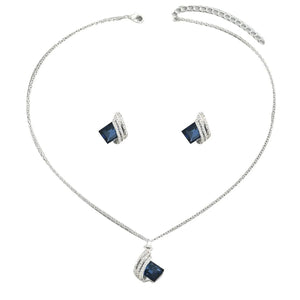 Stainless Steel Crystal Geometric Earrings and Necklace Jewelry Set