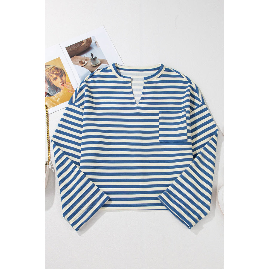 Stripe Chest Pocket Notched Top