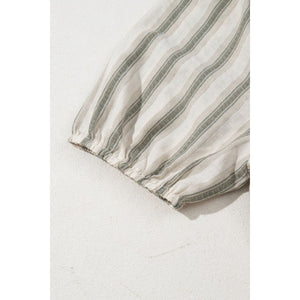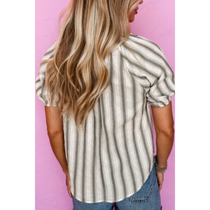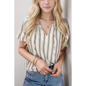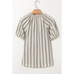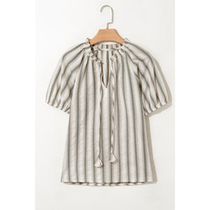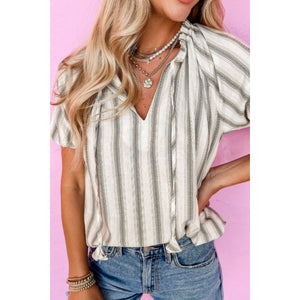 Stripe Frilled Tie Neck Short Sleeve Blouse