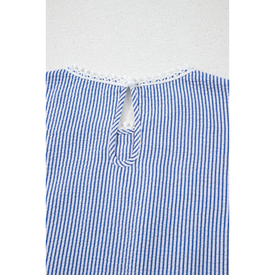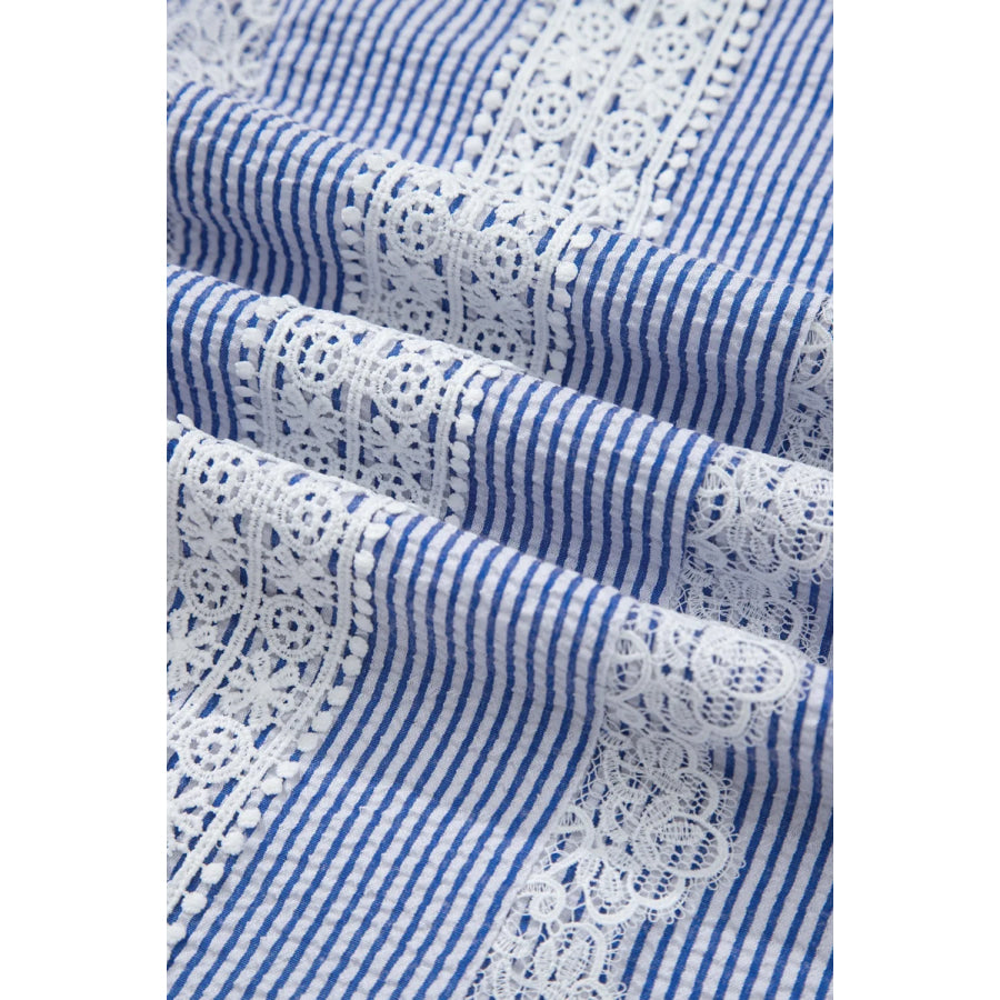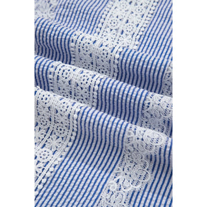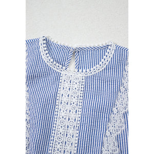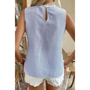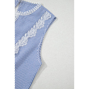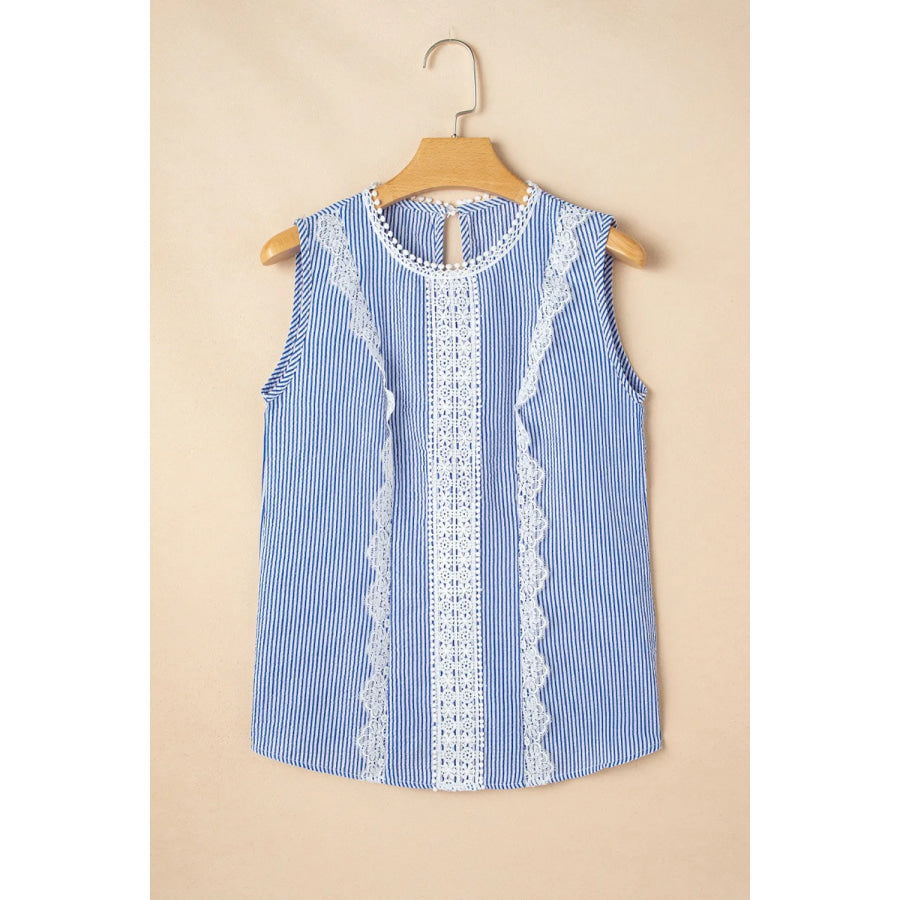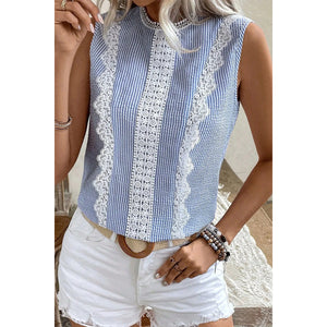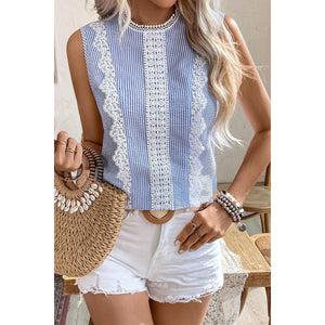 Stripe Lace Patchwork Crew Neck Sleeveless Top
