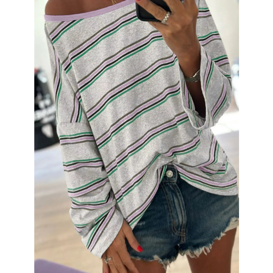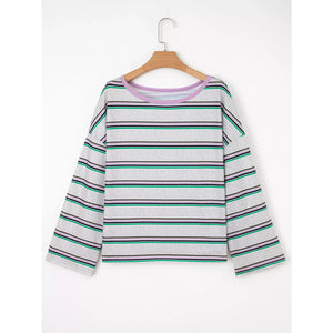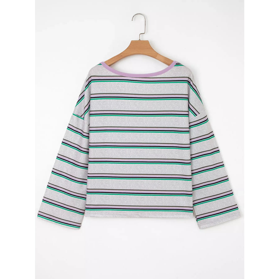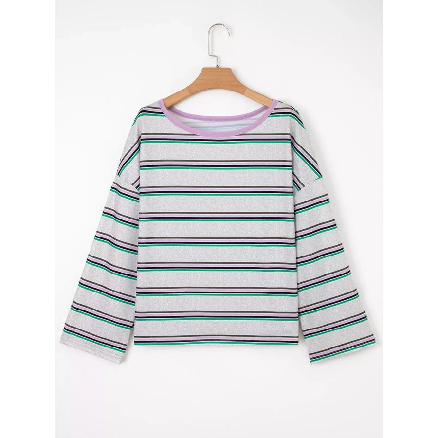 Stripe Oversize Drop Shoulder Long Sleeve Casual Top