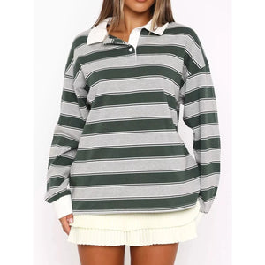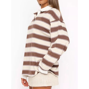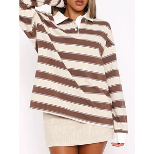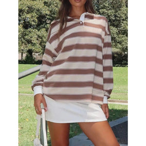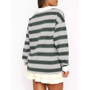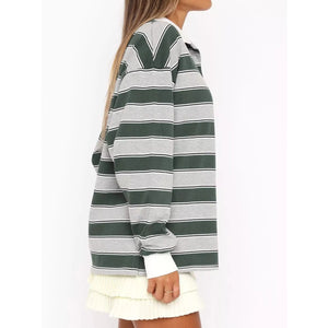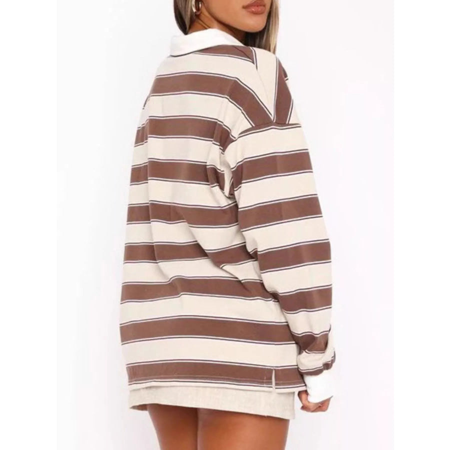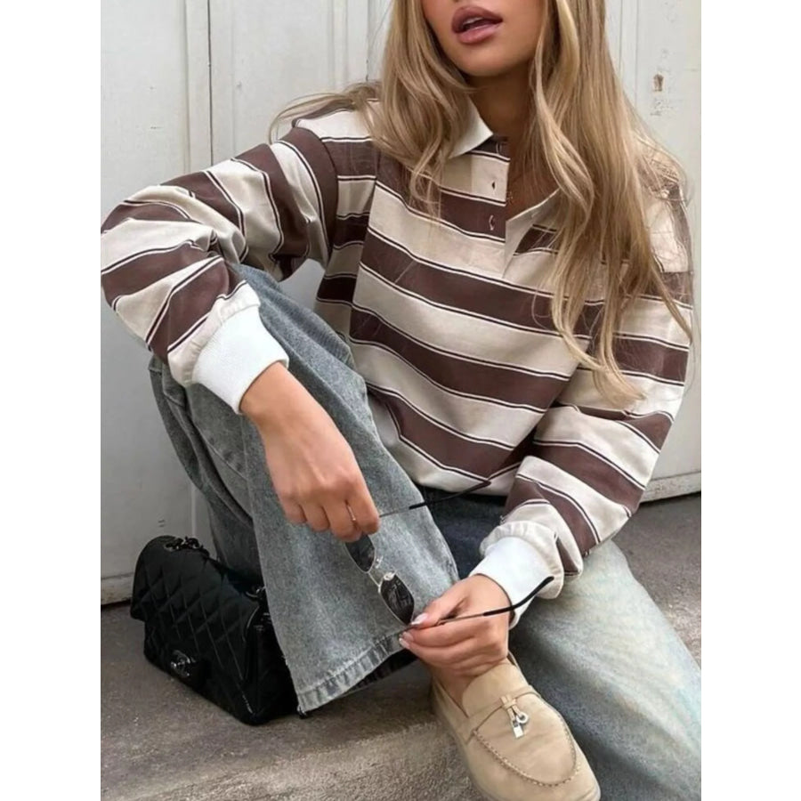 Striped Button Detail Long Sleeve Polo