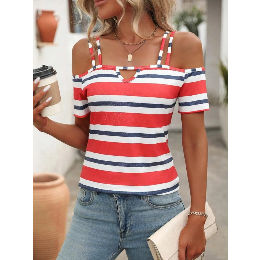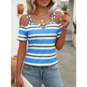 Striped Cold Shoulder T-Shirt