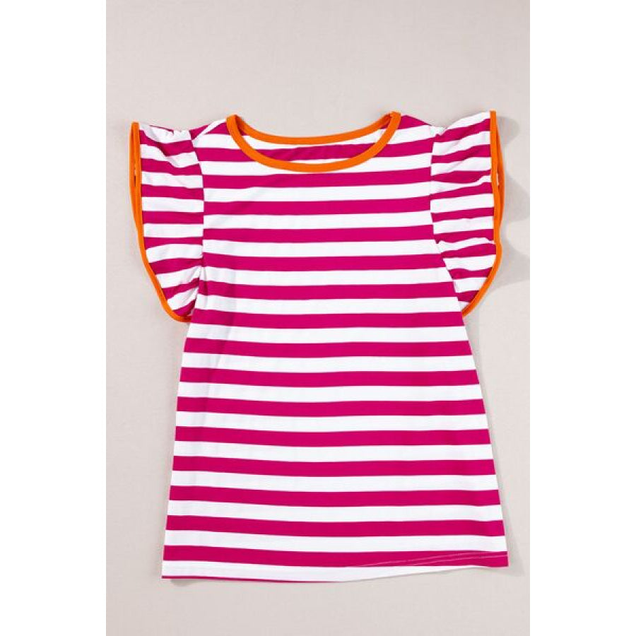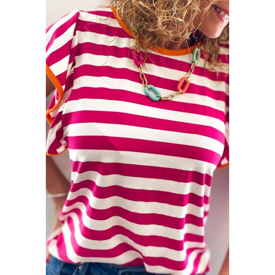 Striped Contrast Round Neck Top