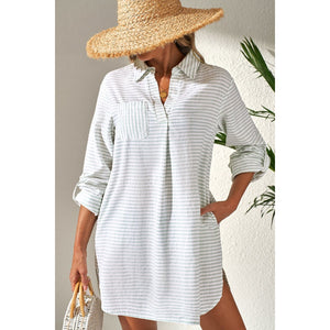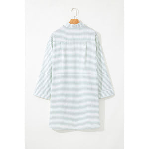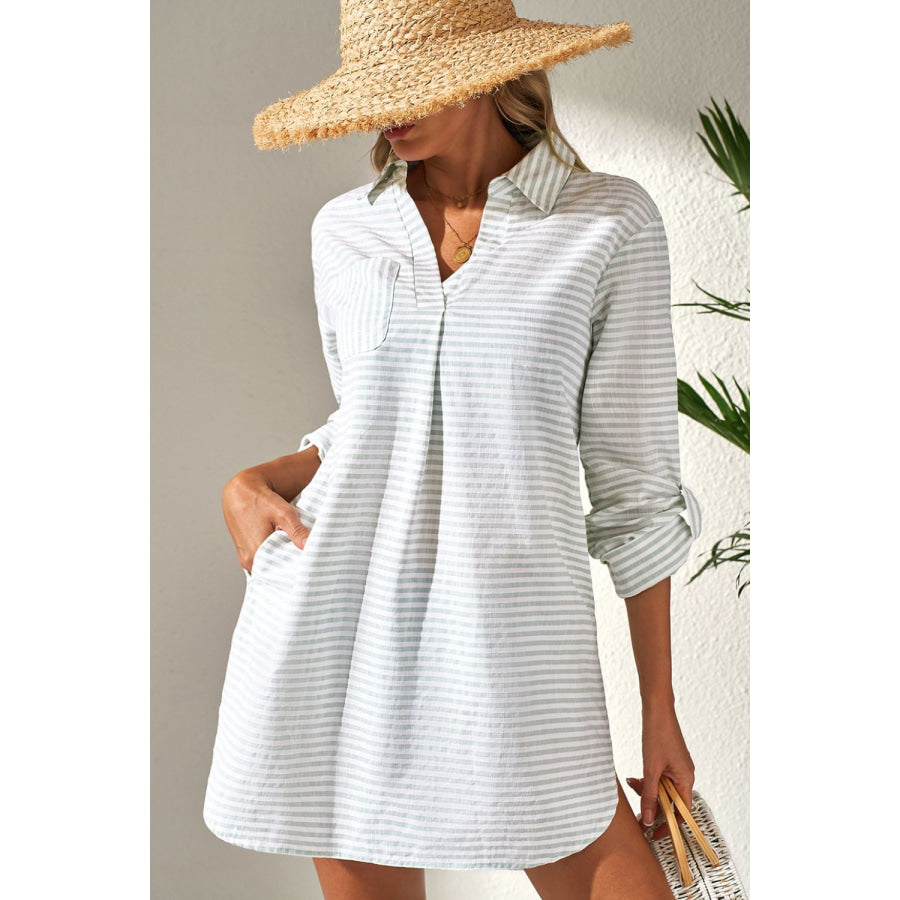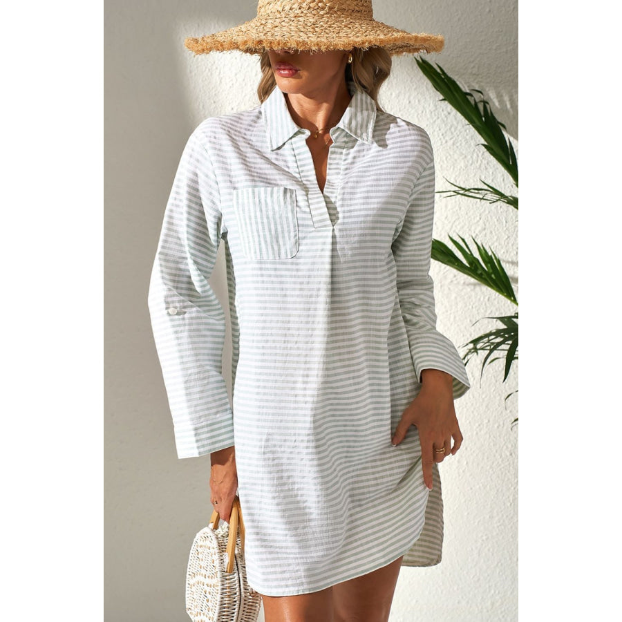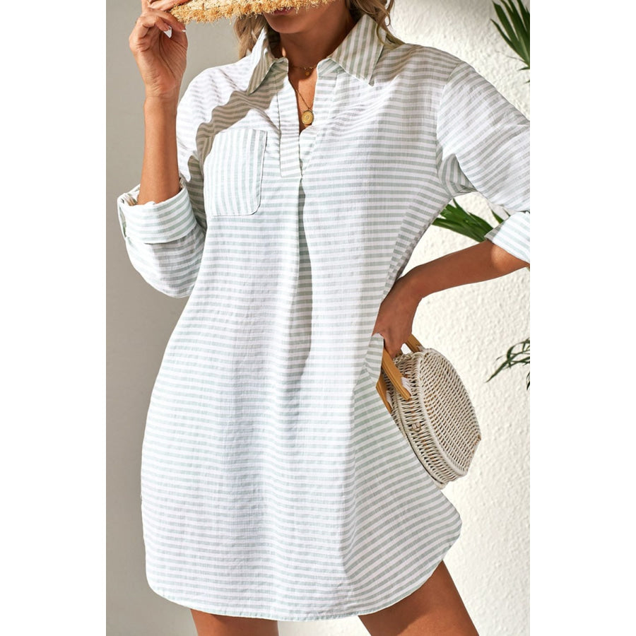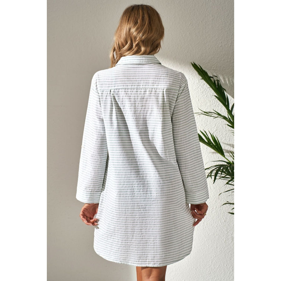 Striped Johnny Collar Long Sleeve Mini Shirt Dress