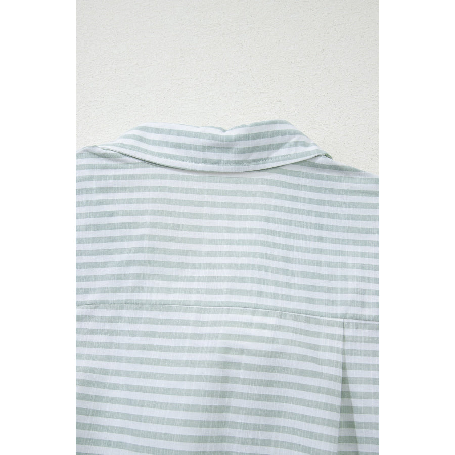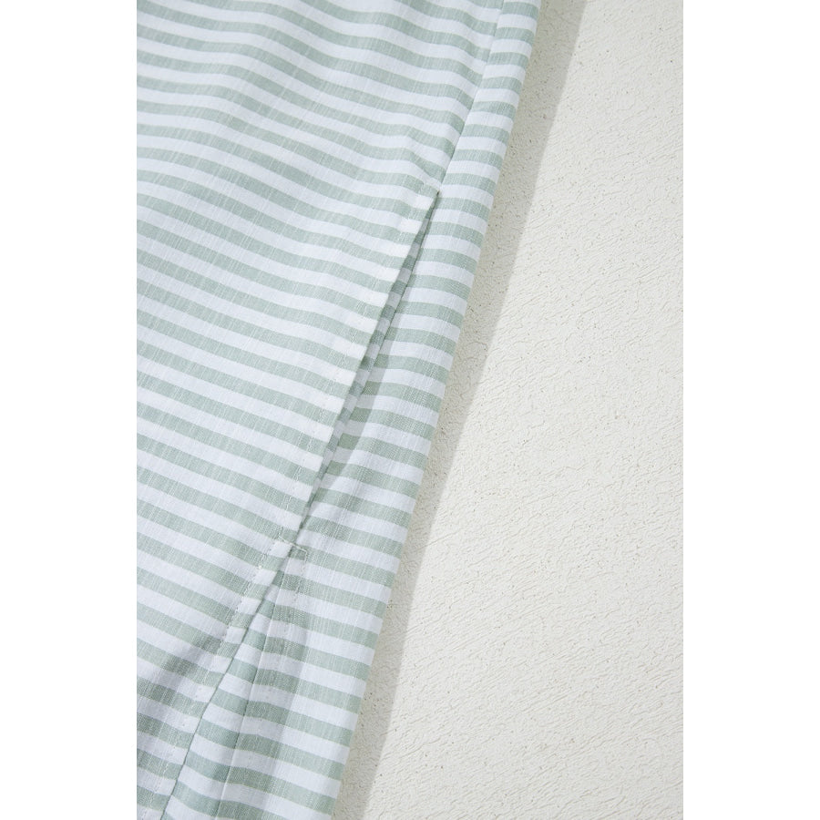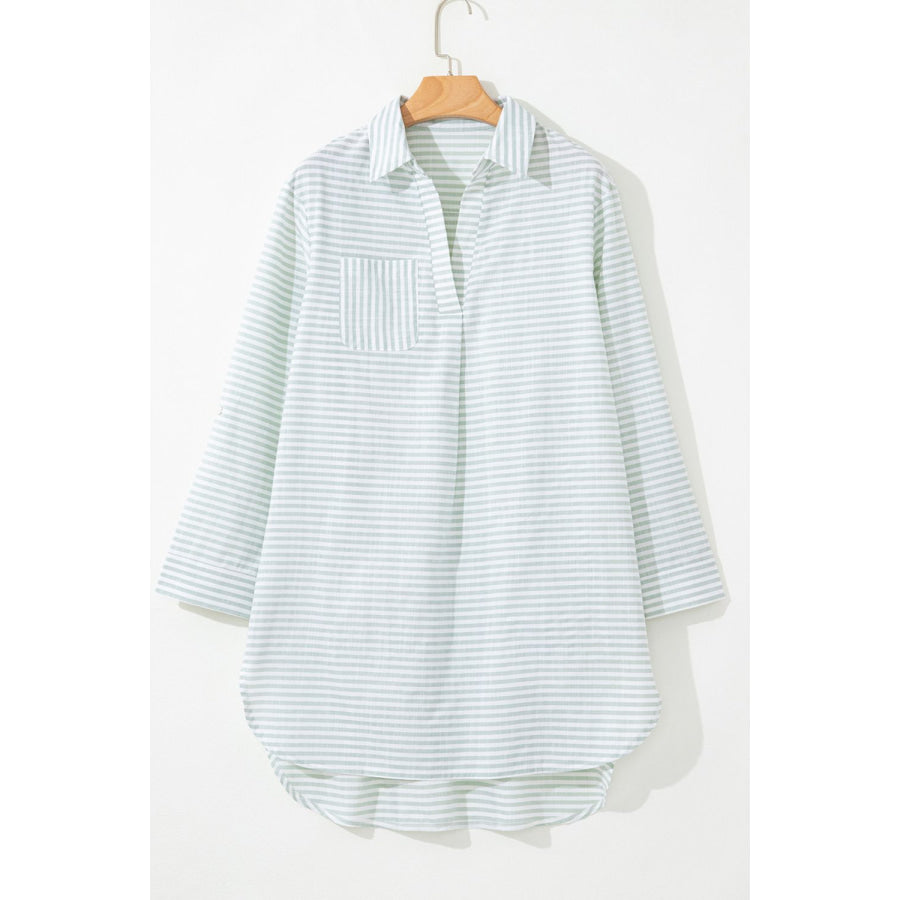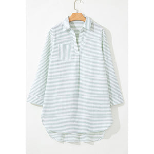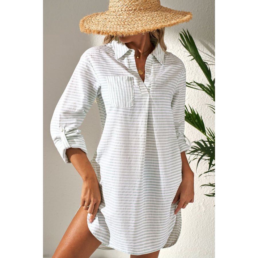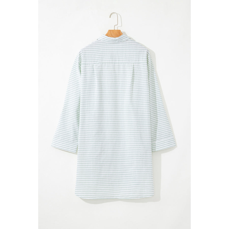 Striped Johnny Collar Long Sleeve Mini Shirt Dress