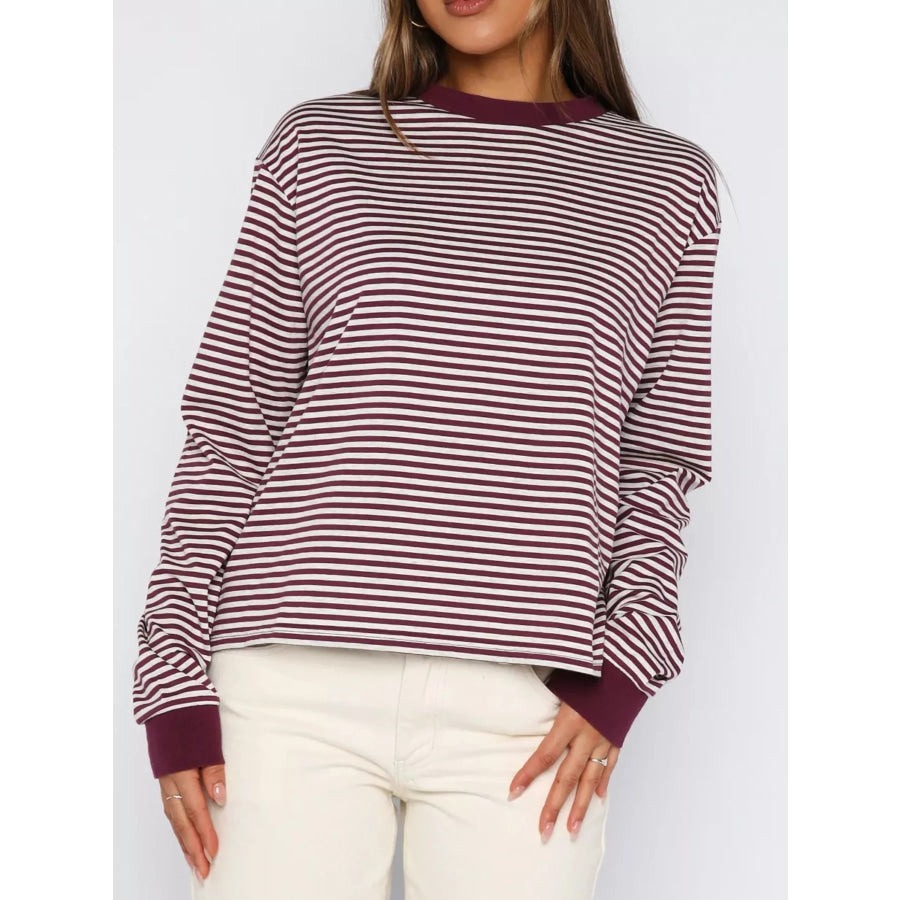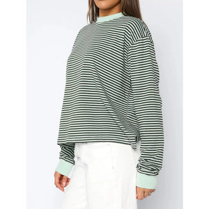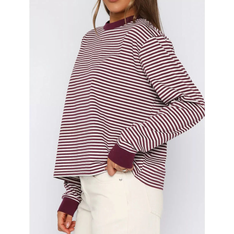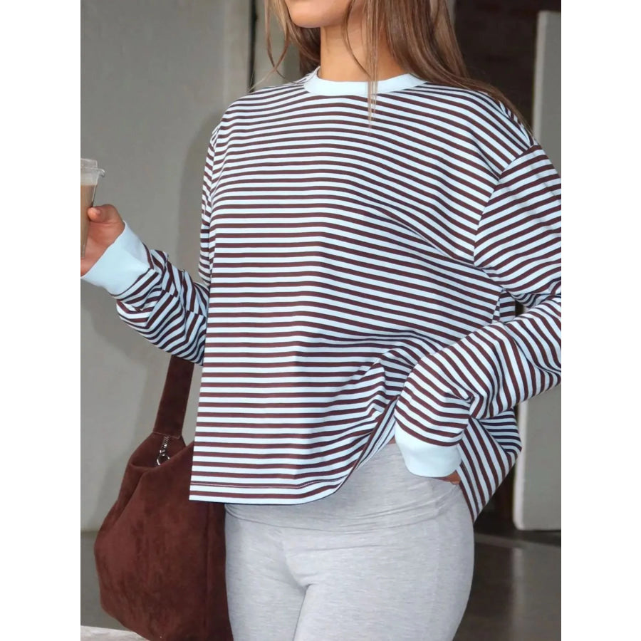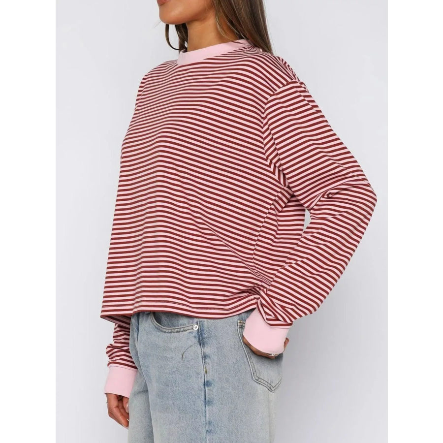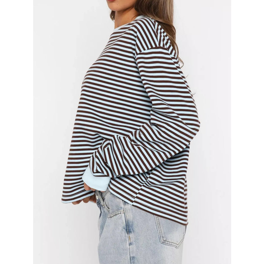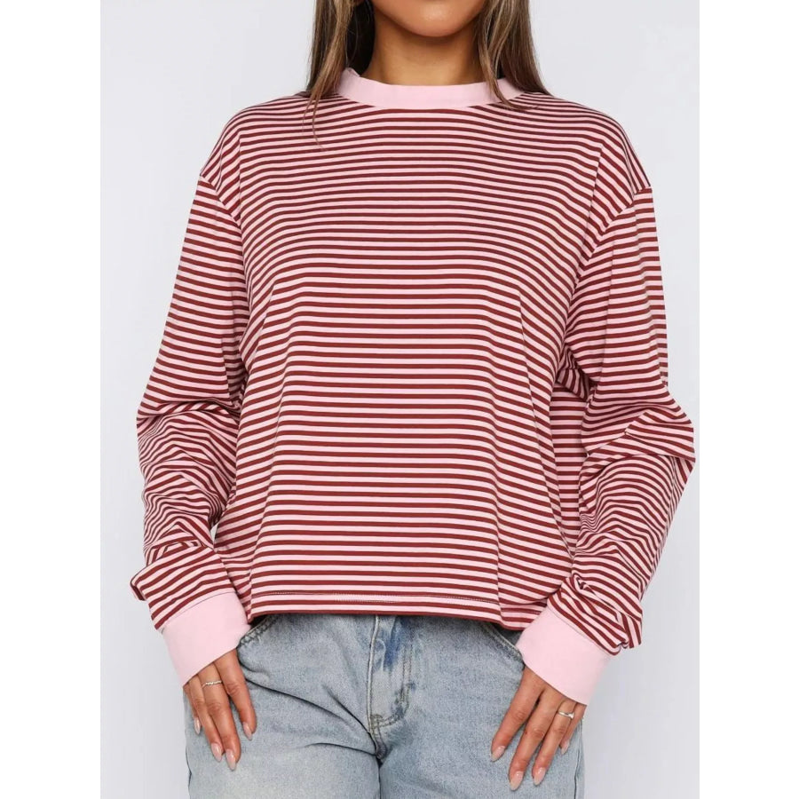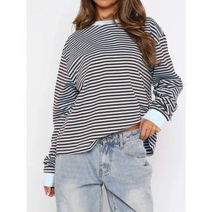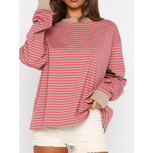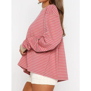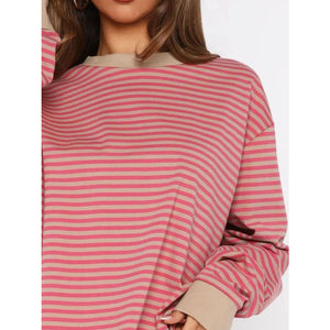 Striped Oversized Round Neck Sweatshirt