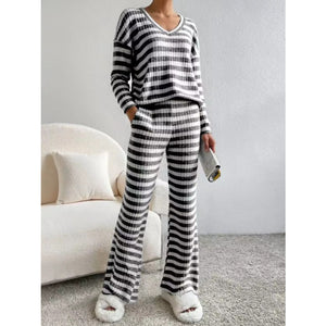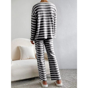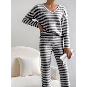 Striped Ribbed Knit Top and Pants Set