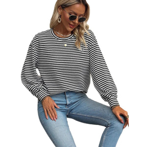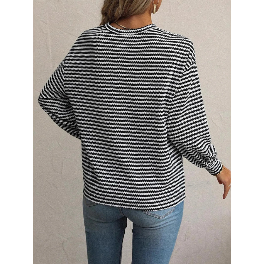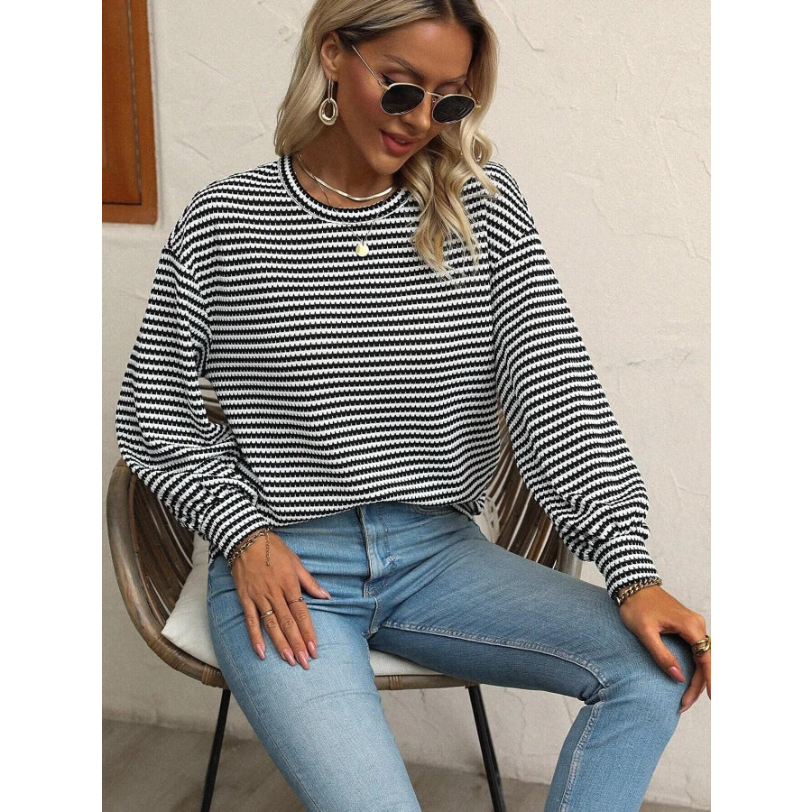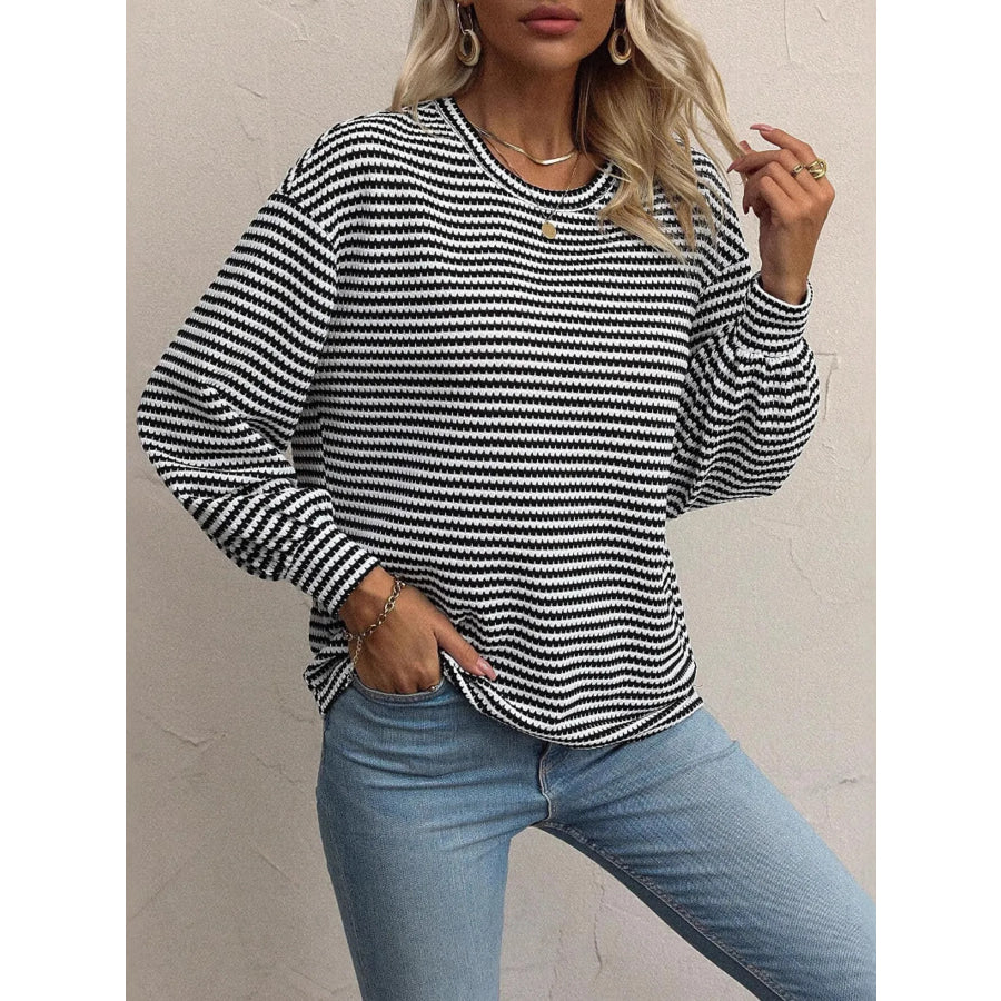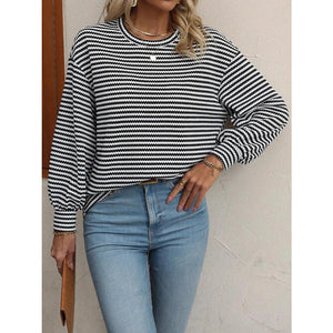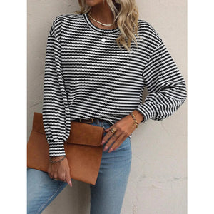 Striped Round Neck Lantern Sleeve Top