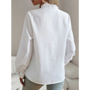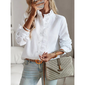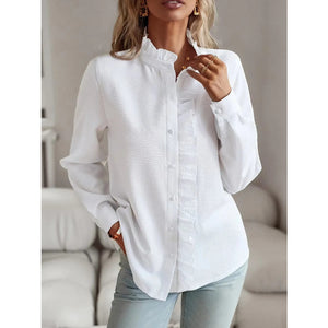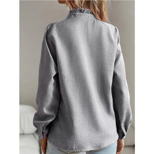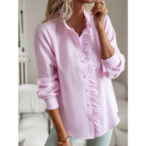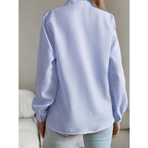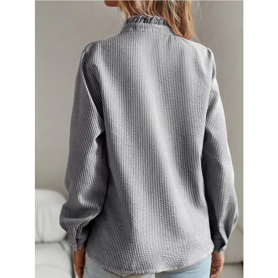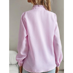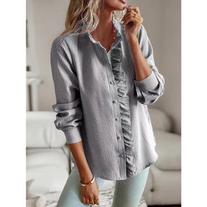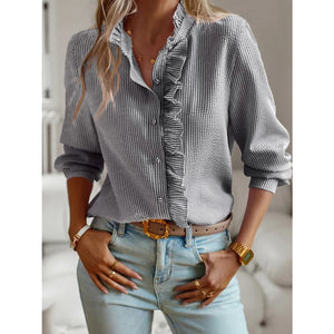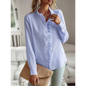 Striped Ruffle Detail Button-Up Blouse