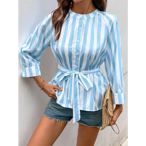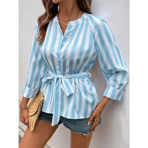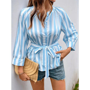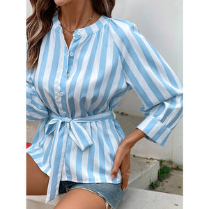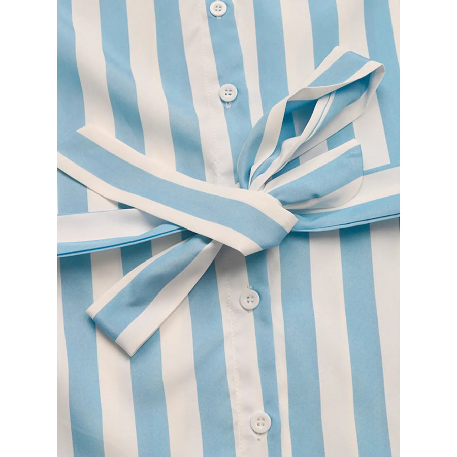 Striped Tie Waist Button Down Shirt