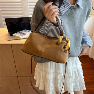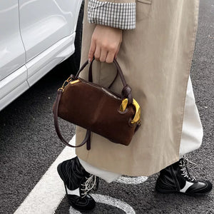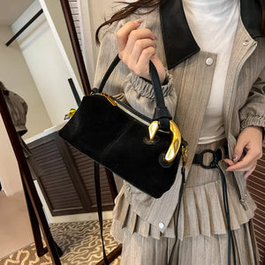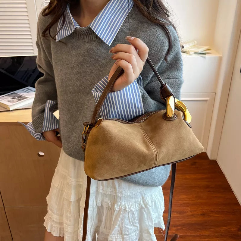 Suede Crossbody Bag with Gold Hardware