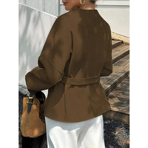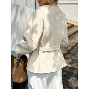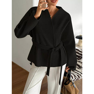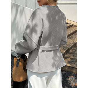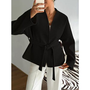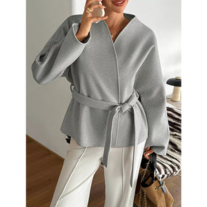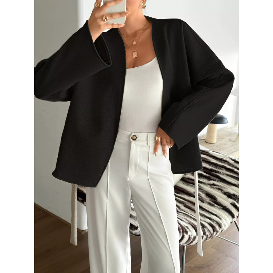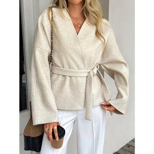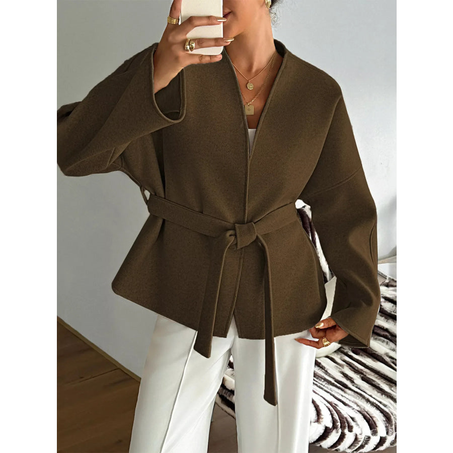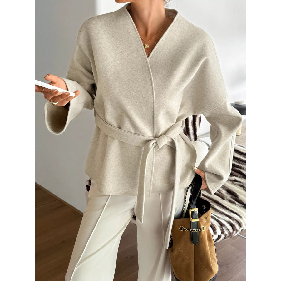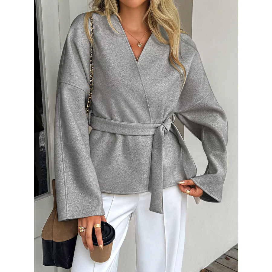 Surplice Dropped Shoulder Tie Belt Outerwear