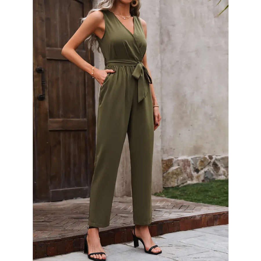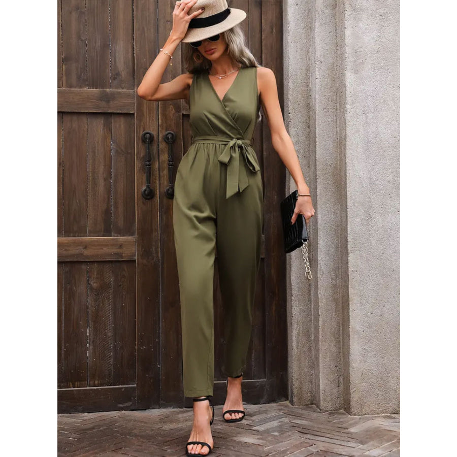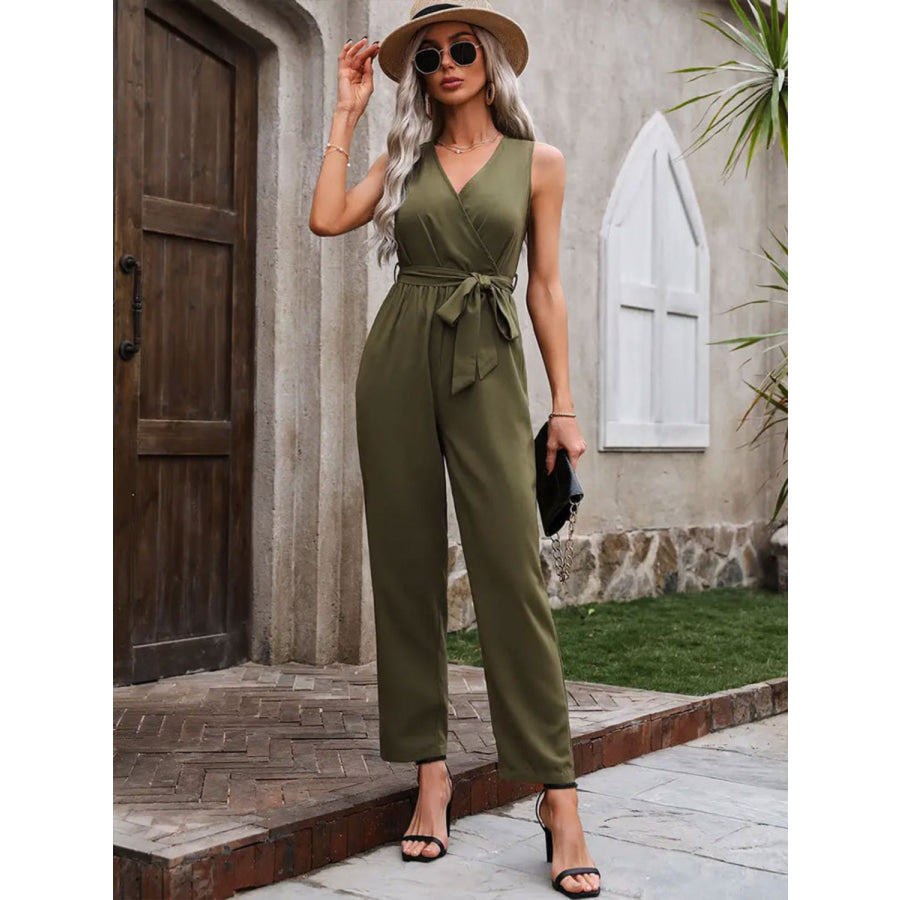 Surplice Tie Waist Sleeveless Jumpsuit