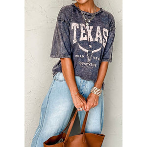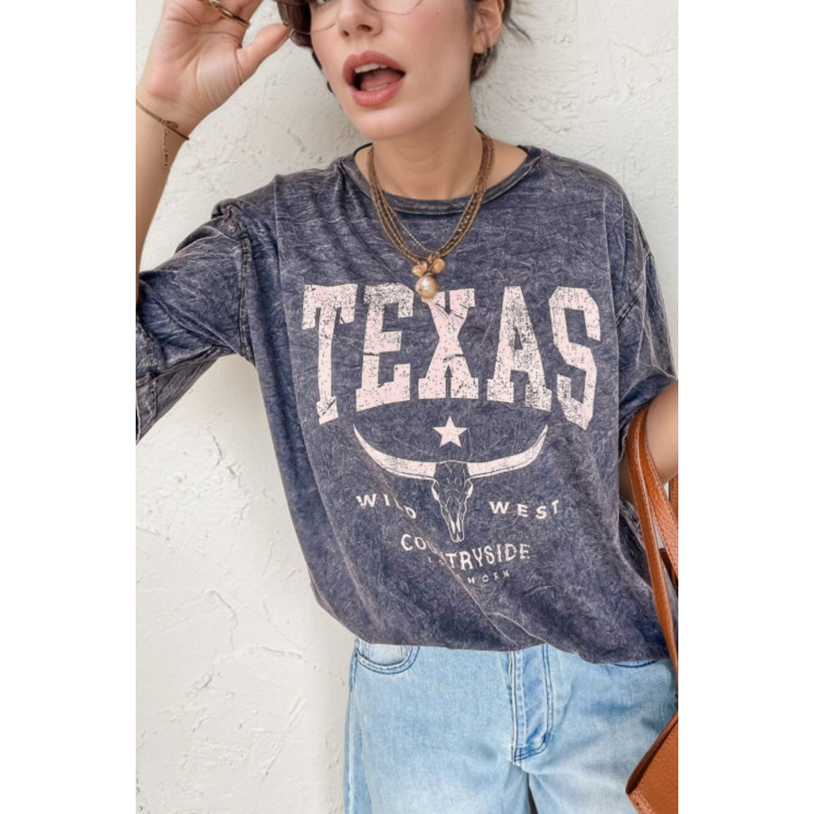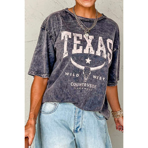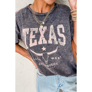 TEXAS Steer Head Graphic Mineral Wash Oversized T-Shirt