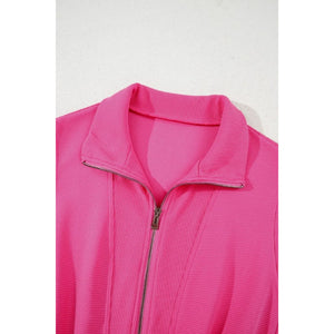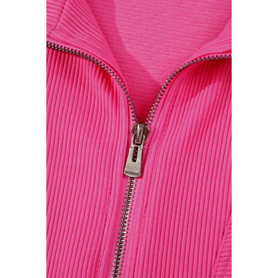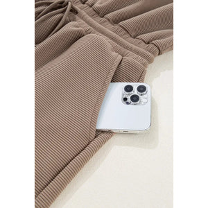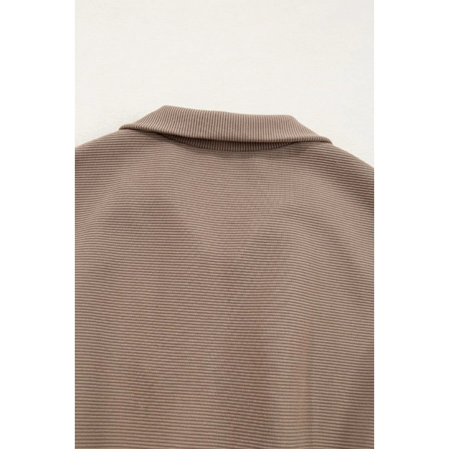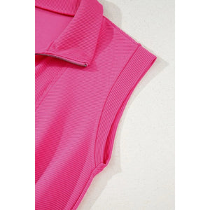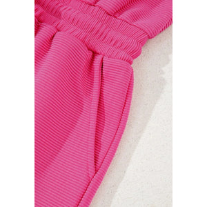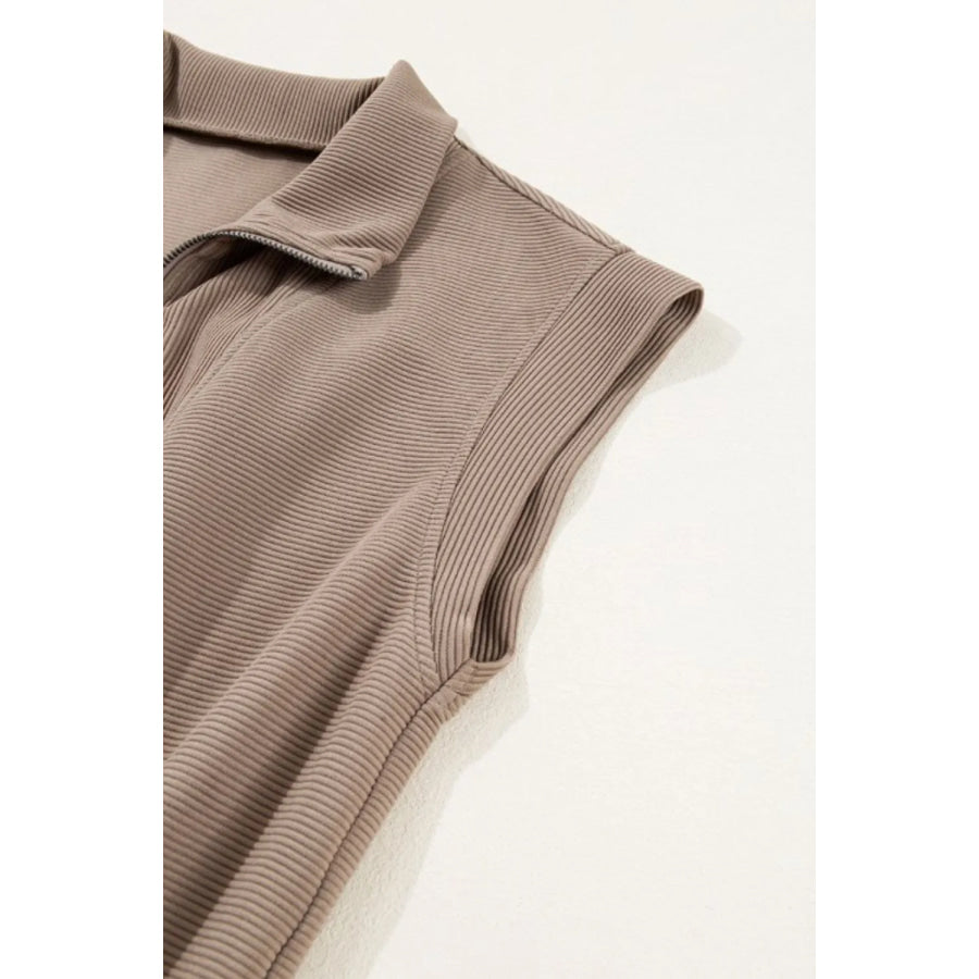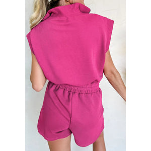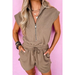 Textured Short Sleeve Half Zip Drawstring Waist Romper
