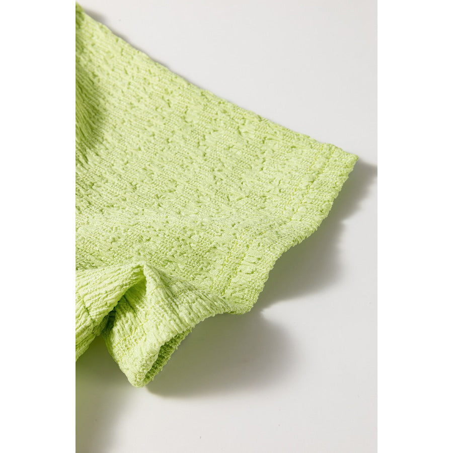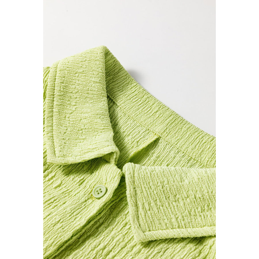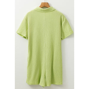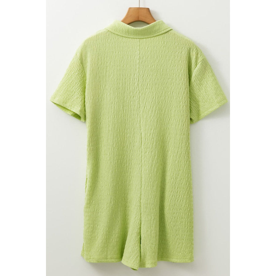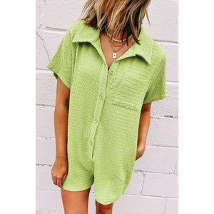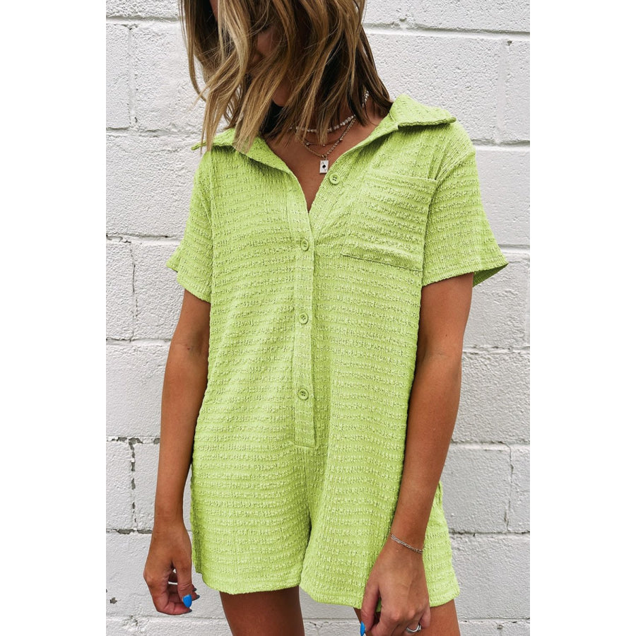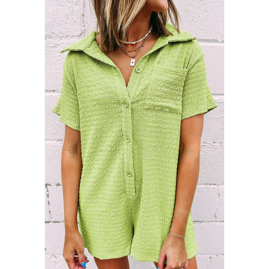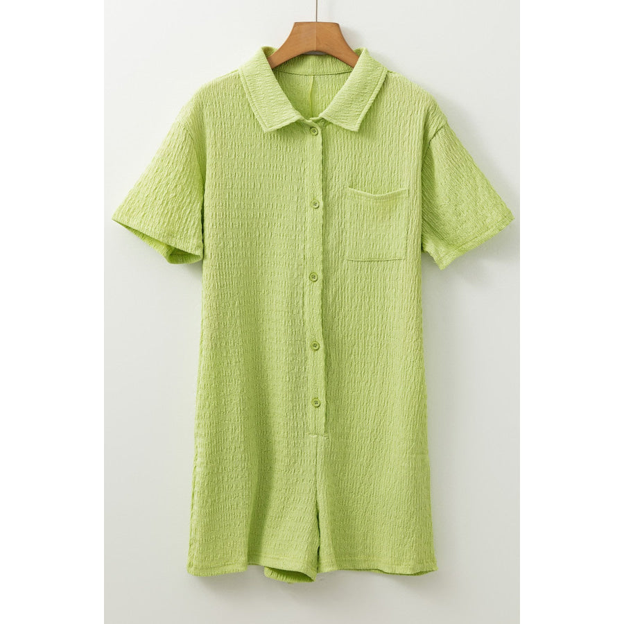 Textured Short Sleeve Patched Pocket Buttoned Romper
