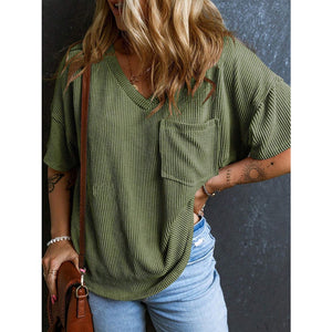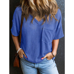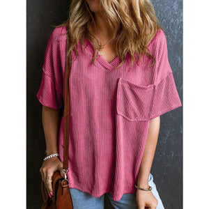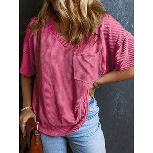 Textured V-Neck Half Sleeve T-Shirt
