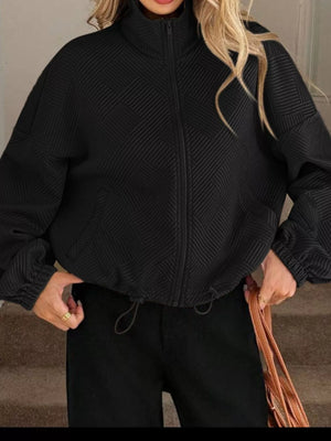 Textured Zip-Up Drawstring Hem Jacket