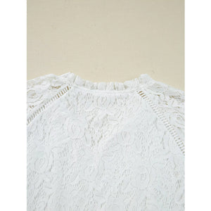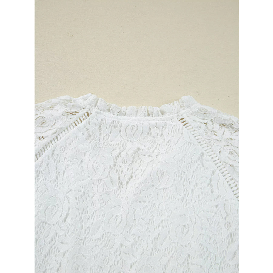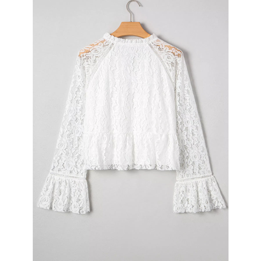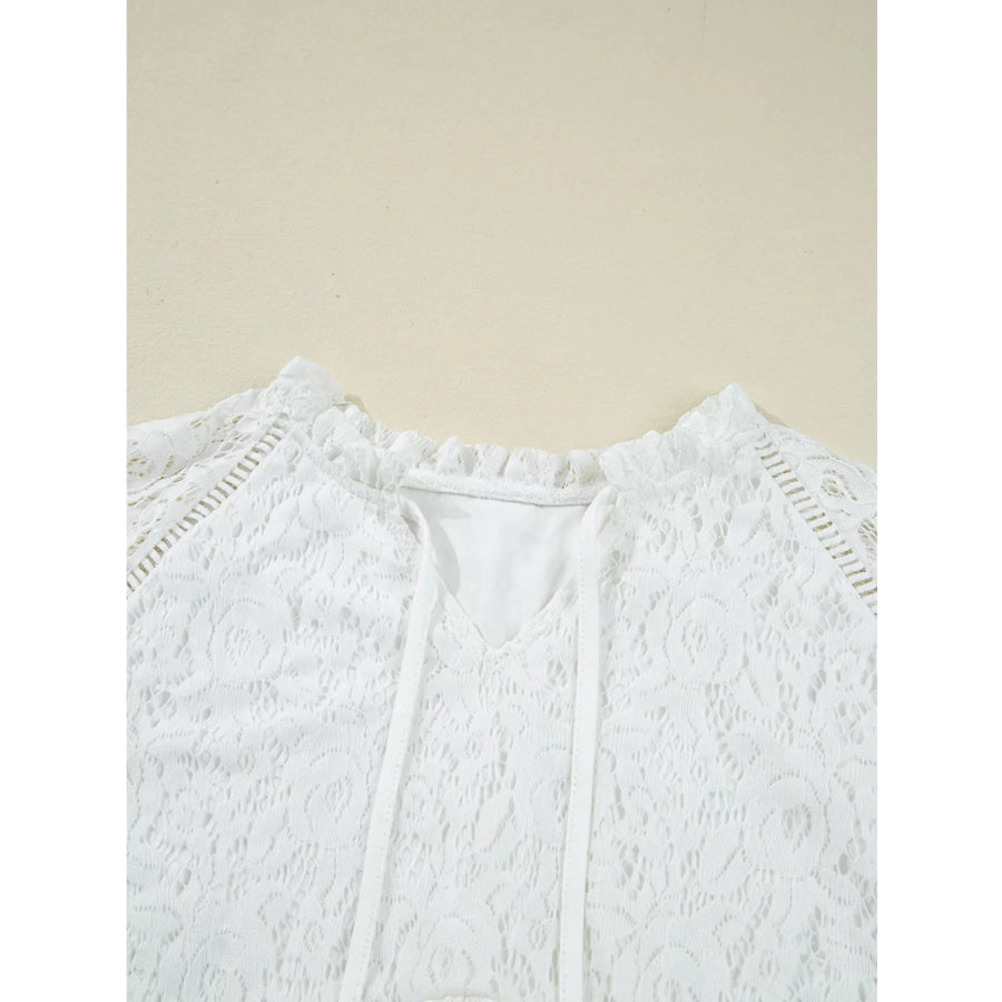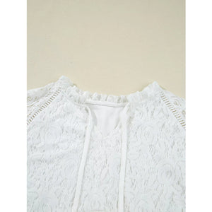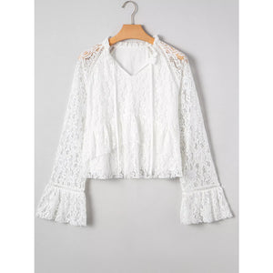 Tie Neck Lace Ruffle Detail Long Sleeve Blouse