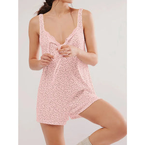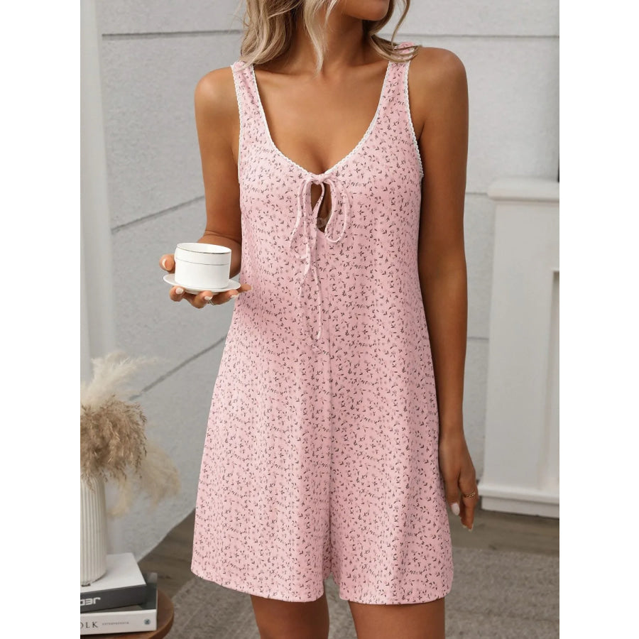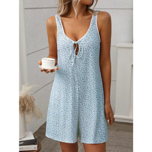 Tied Front Printed Wide Strap Romper