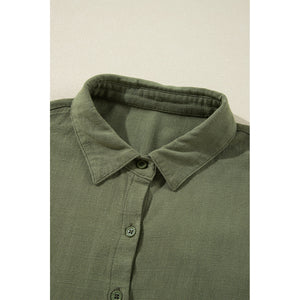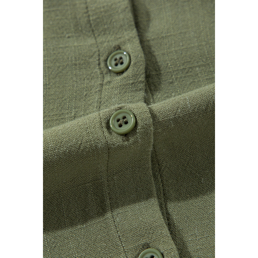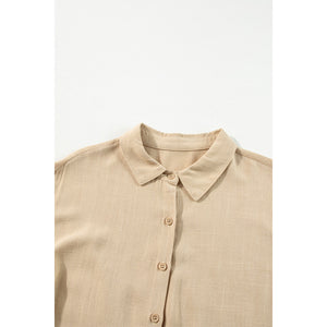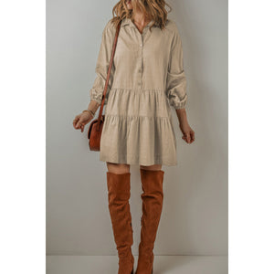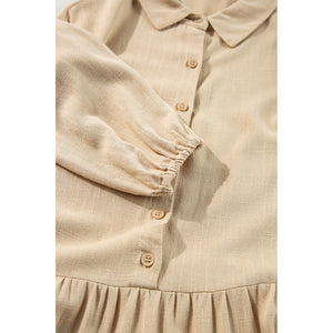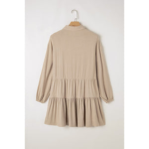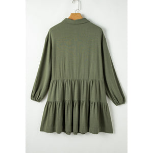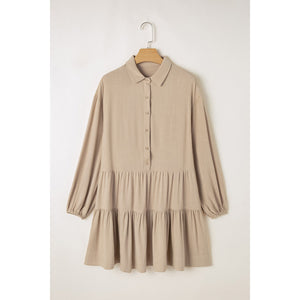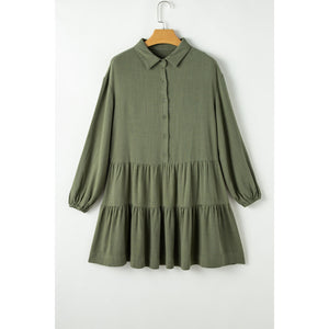 Tiered Collared Neck Balloon Sleeve Shirt Dress