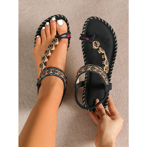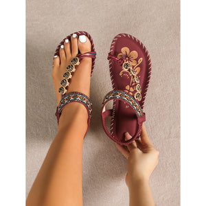 Toe Loop PU Leather Flats Sandals