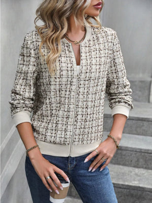 Tweed Zip Up Bomber Jacket
