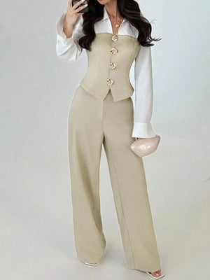 Two Tone Shirt and Wide Leg Pants Set