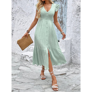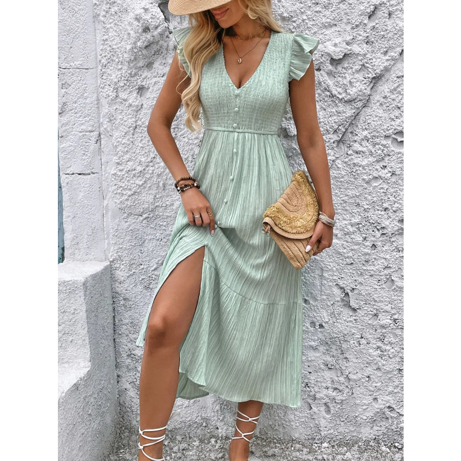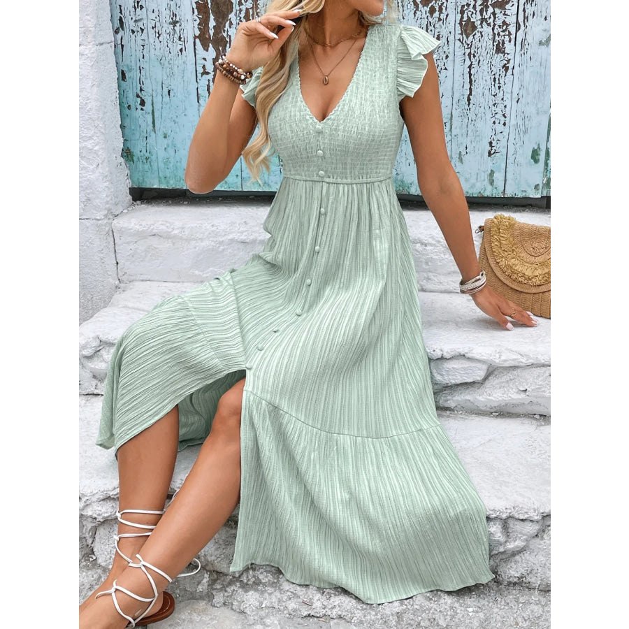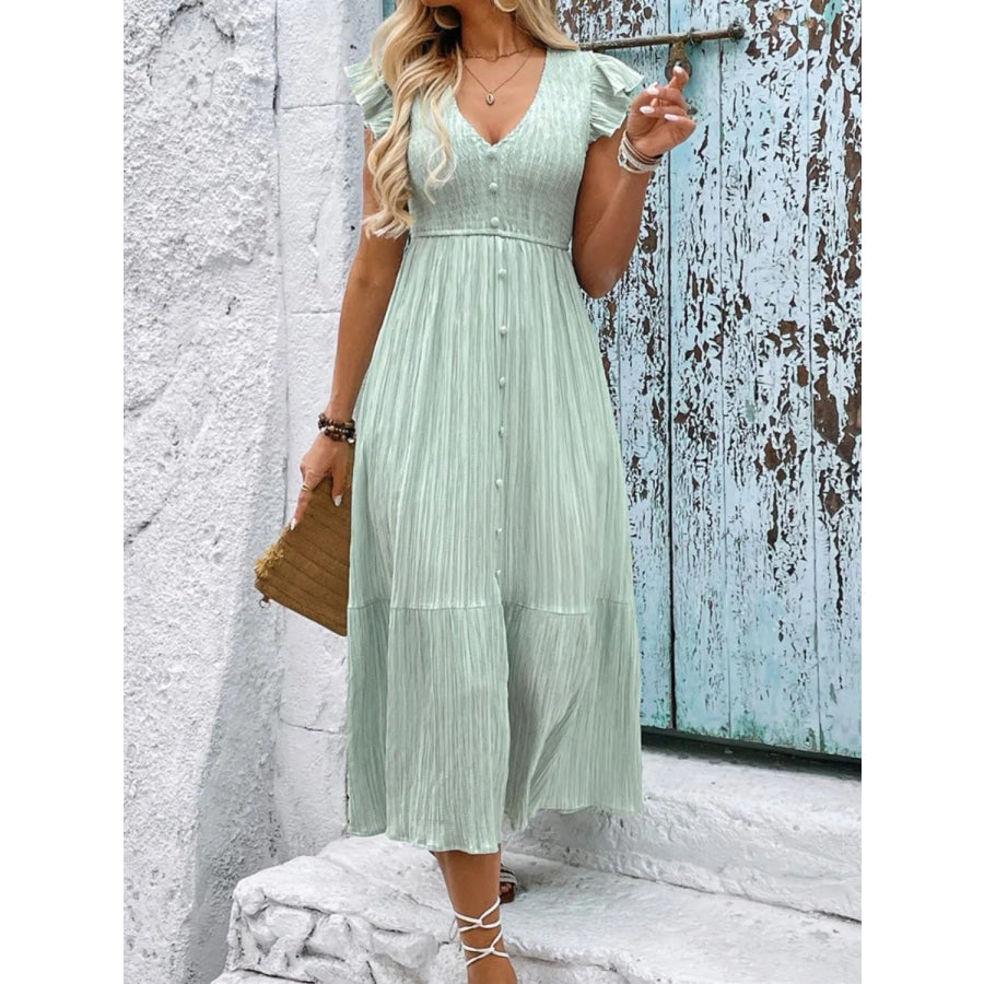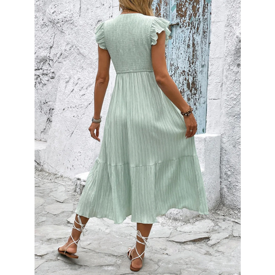 V-Neck Ruffled Cap Sleeve Dress
