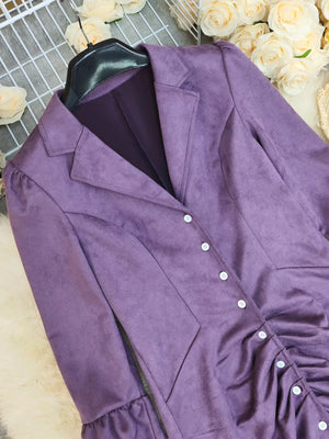 Velvet Ruffle Slit Midi Dress