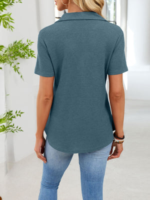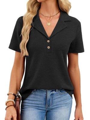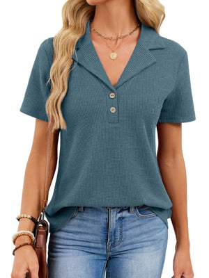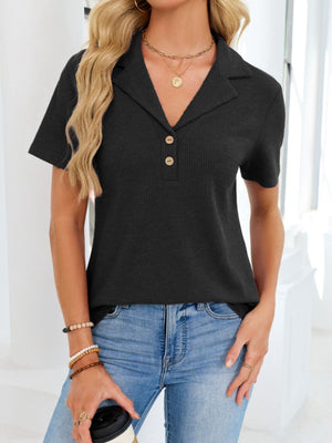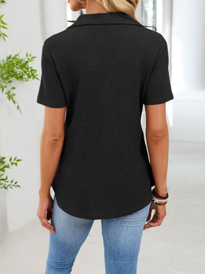 Waffle Knit Button Detail T-Shirt