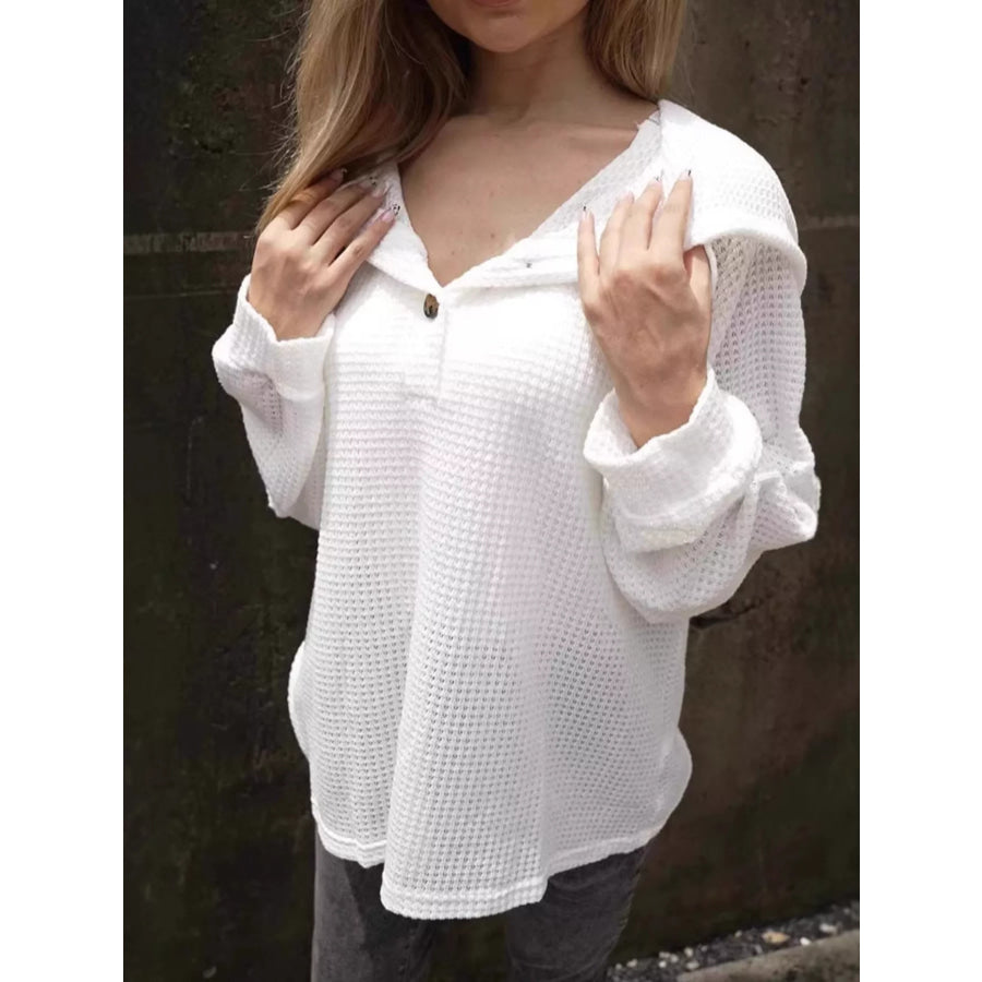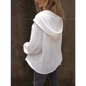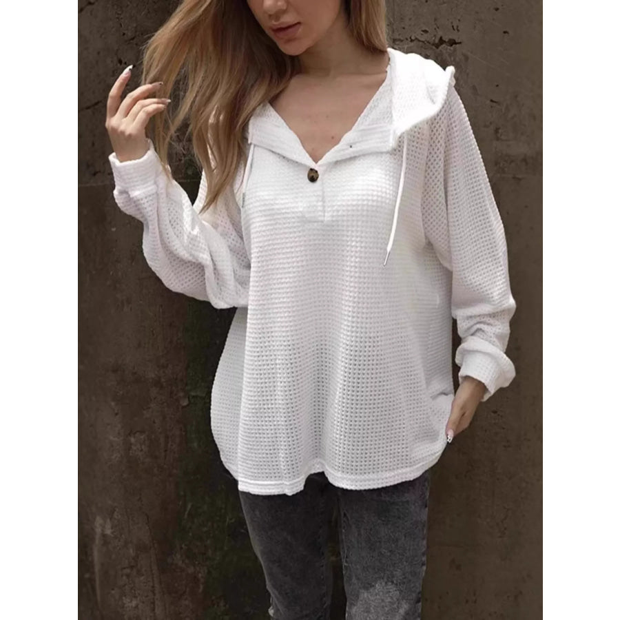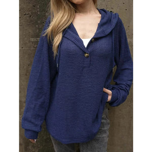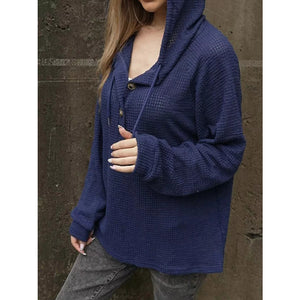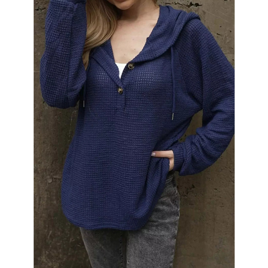 Waffle Knit Hoodie with Button Detail