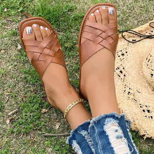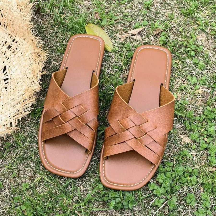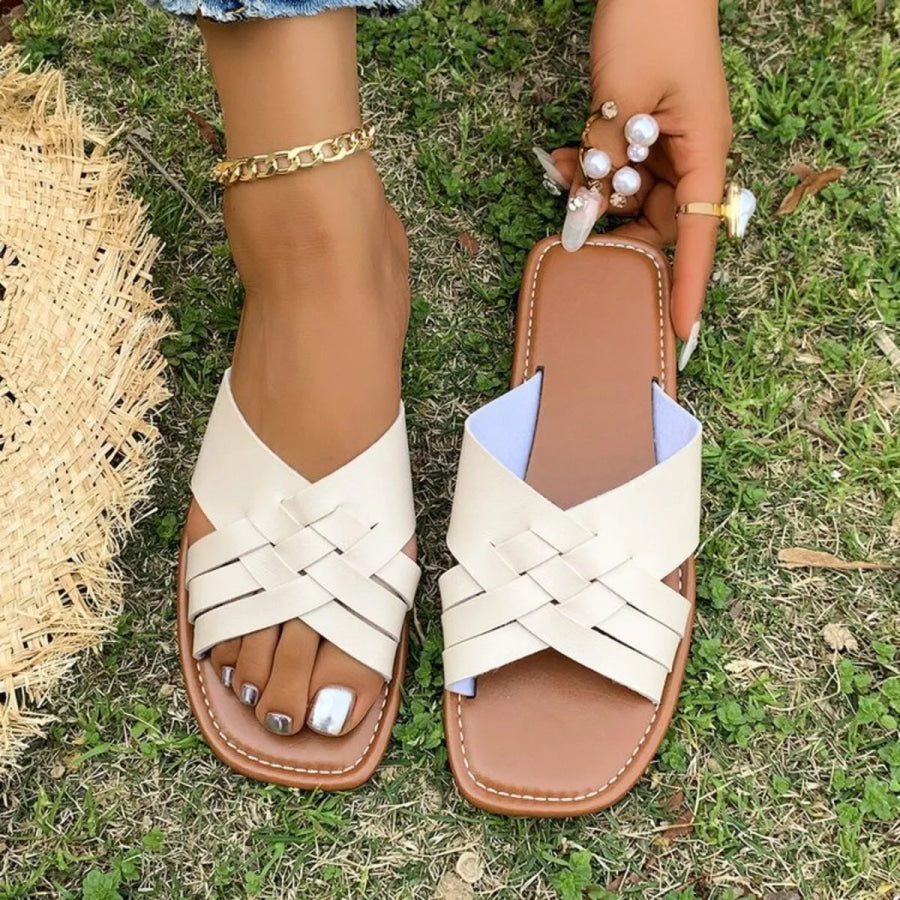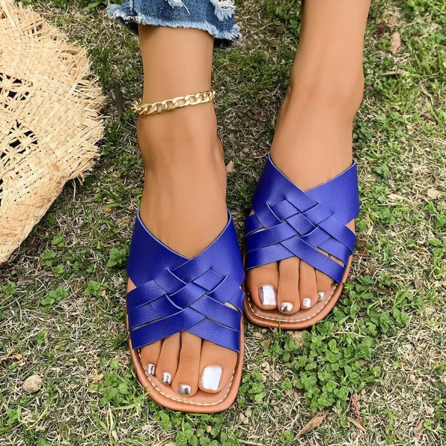 Woven Cross Strap Flat Sandals