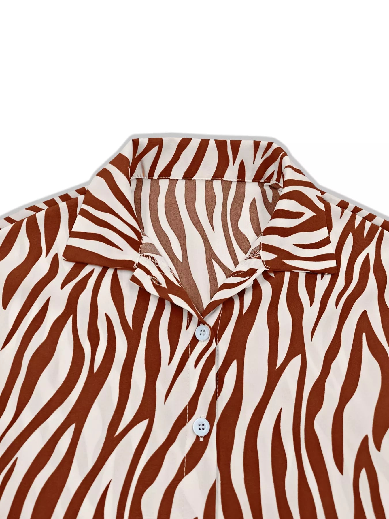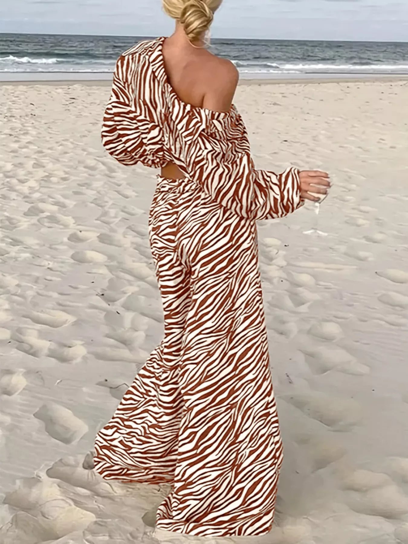 Zebra Print Relaxed Fit Top and Pants Two-Piece Set